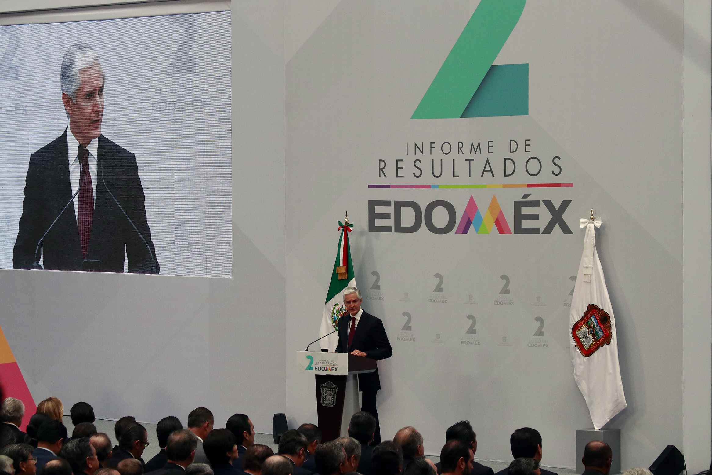 Toluca, Estado de México, 24 de septiembre de 2019. Durante su Segundo Informe de Resultados, el Gobernador Alfredo Del Mazo Maza señaló que el Estado de México consolidó su economía y destacó avances y logros importantes para reducir la pobreza, la marginación y la desigualdad social, que permiten fortalecer el desarrollo de la entidad mexiquense.