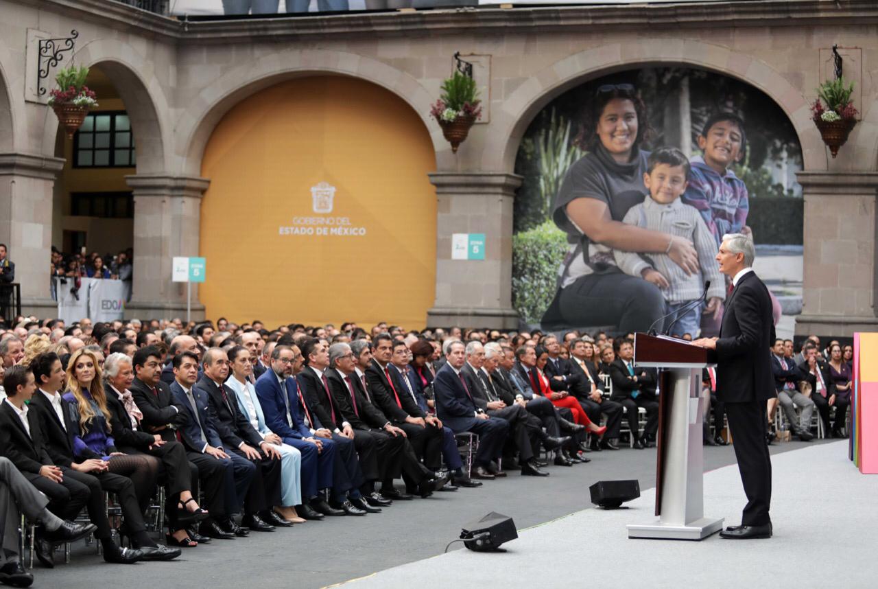 En Palacio de Gobierno y ante Olga Sánchez Cordero, Secretaría de Gobernación, quien asistió en representación del Presidente Andrés Manuel López Obrador, el Gobernador Alfredo Del Mazo indicó que el compromiso de su administración es fortalecer la relación entre ciudadanos e instituciones, así como velar por los sectores vulnerables para reducir las desigualdades.