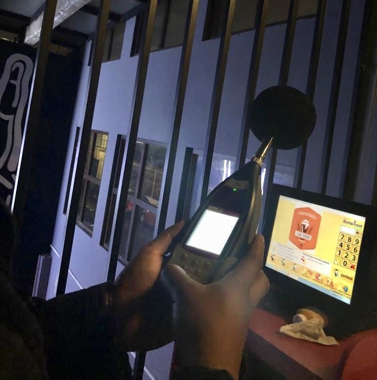 Durante el recorrido de supervisión, el personal realizó 525 lecturas de decibeles, con sonómetro calibrado y certificado por laboratorio autorizado, cuyo resultado fue la clausura temporal de las bocinas de un establecimiento nocturno.