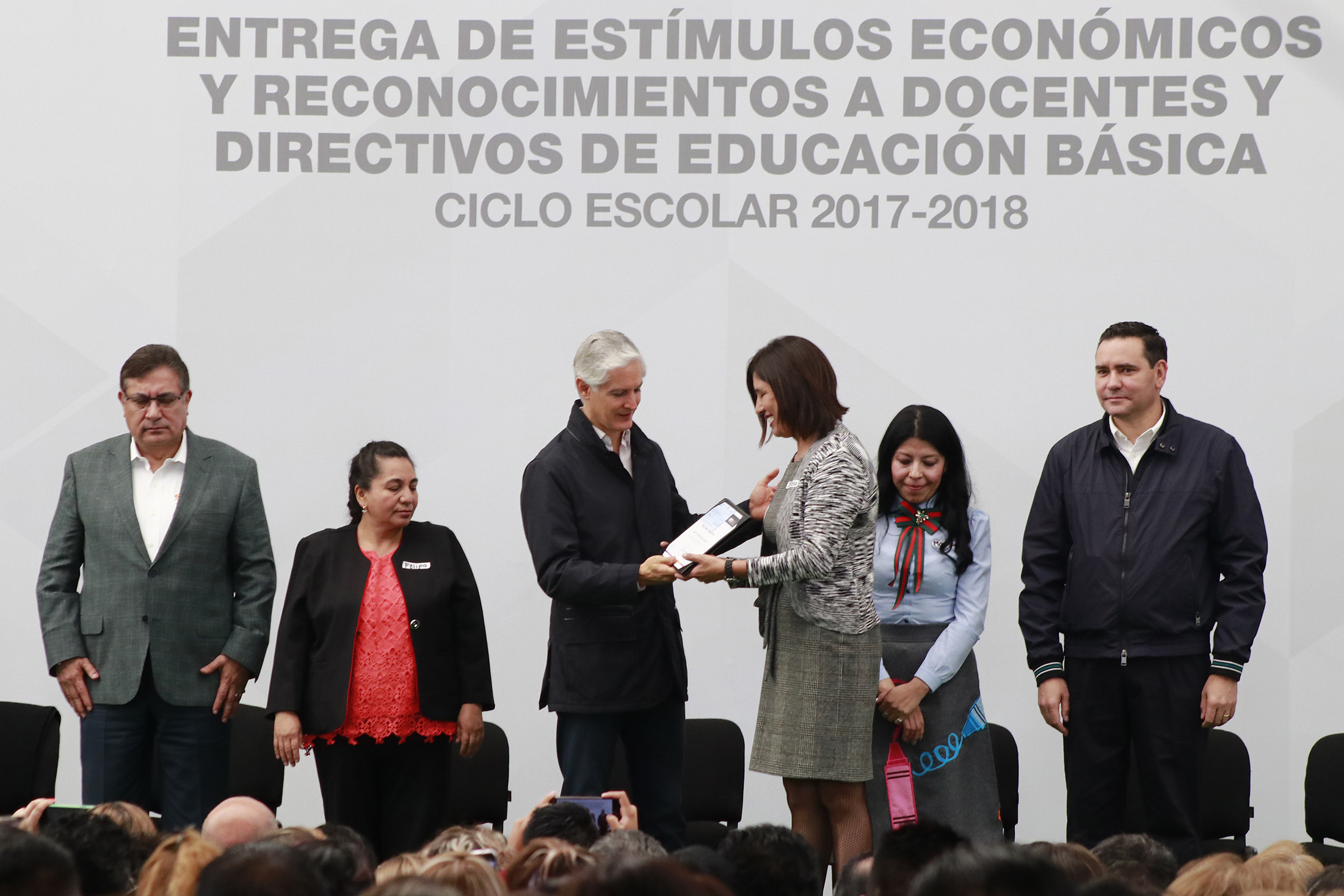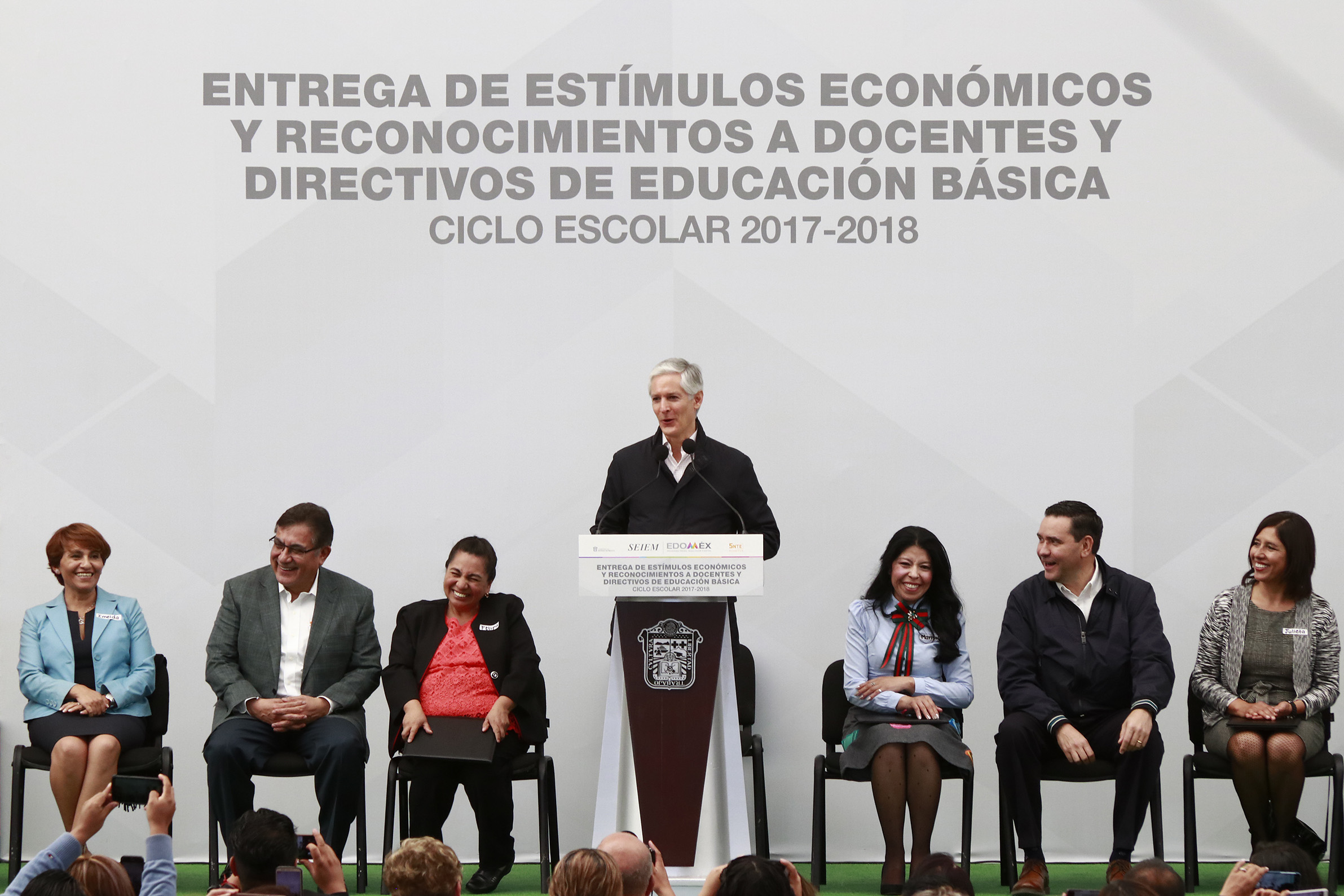Acompañado por el Secretario General del Sindicato Nacional de Trabajadores de la Educación (SNTE), Alfonso Cepeda Salas, el mandatario mexiquense externó que el programa de entrega de estímulos económicos y reconocimientos a docentes y directivos se otorgó por última vez en el 2016, y aseguró que su Gobierno le dará continuidad para seguir reconociendo el trabajo que los profesores hacen todos los días, y destacó que, a nivel nacional, este tipo de apoyo solamente se entrega en el Estado de México.