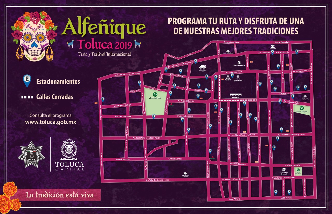 Toluca, Estado de México, viernes 4 de octubre de 2019.- Con el objetivo de procurar el orden para el cuidado de niños, adultos mayores, mujeres embarazadas y personas con discapacidad que asistan a la Feria y Festival Internacional Alfeñique Toluca 2019, el gobierno municipal de la capital invita a identificar los accesos y salidas y respetar las señalizaciones.