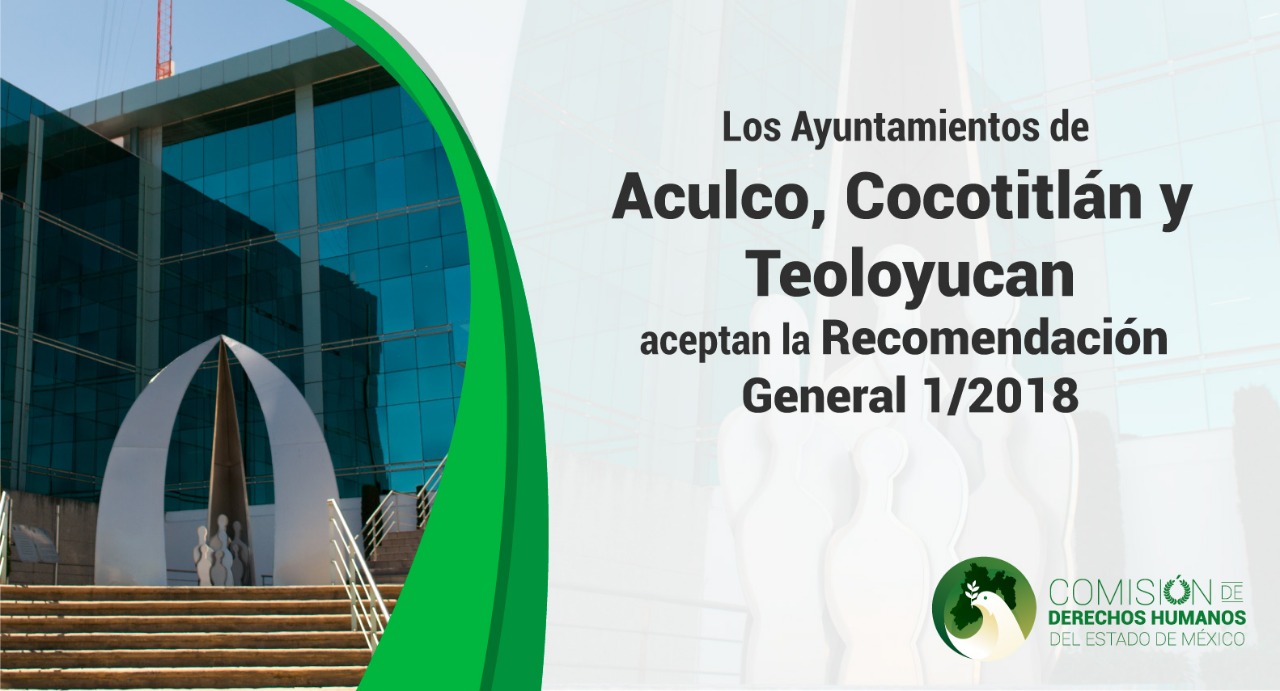De los 125 municipios mexiquenses, 19 han aceptado dicha recomendación: San Mateo Atenco, Toluca, Tlalnepantla, Jilotepec, Nicolás Romero, San Felipe del Progreso, Ixtlahuaca, Tequixquiac, Morelos, San Antonio la Isla, Tenango del Valle, Metepec, Temamatla, Acambay, Coyotepec, Texcaltitlán, Aculco, Teoloyucan y Cocotitlán.