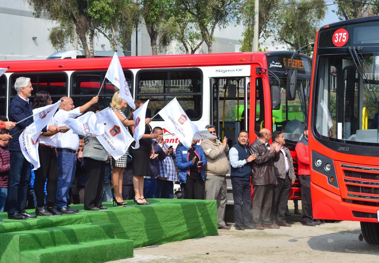 - Encabeza Del Mazo Maza banderazo de salida de 400 unidades nuevas de transporte público, con cámaras de videovigilancia, GPS y botones de pánico, que darán servicio en el Valle de México.