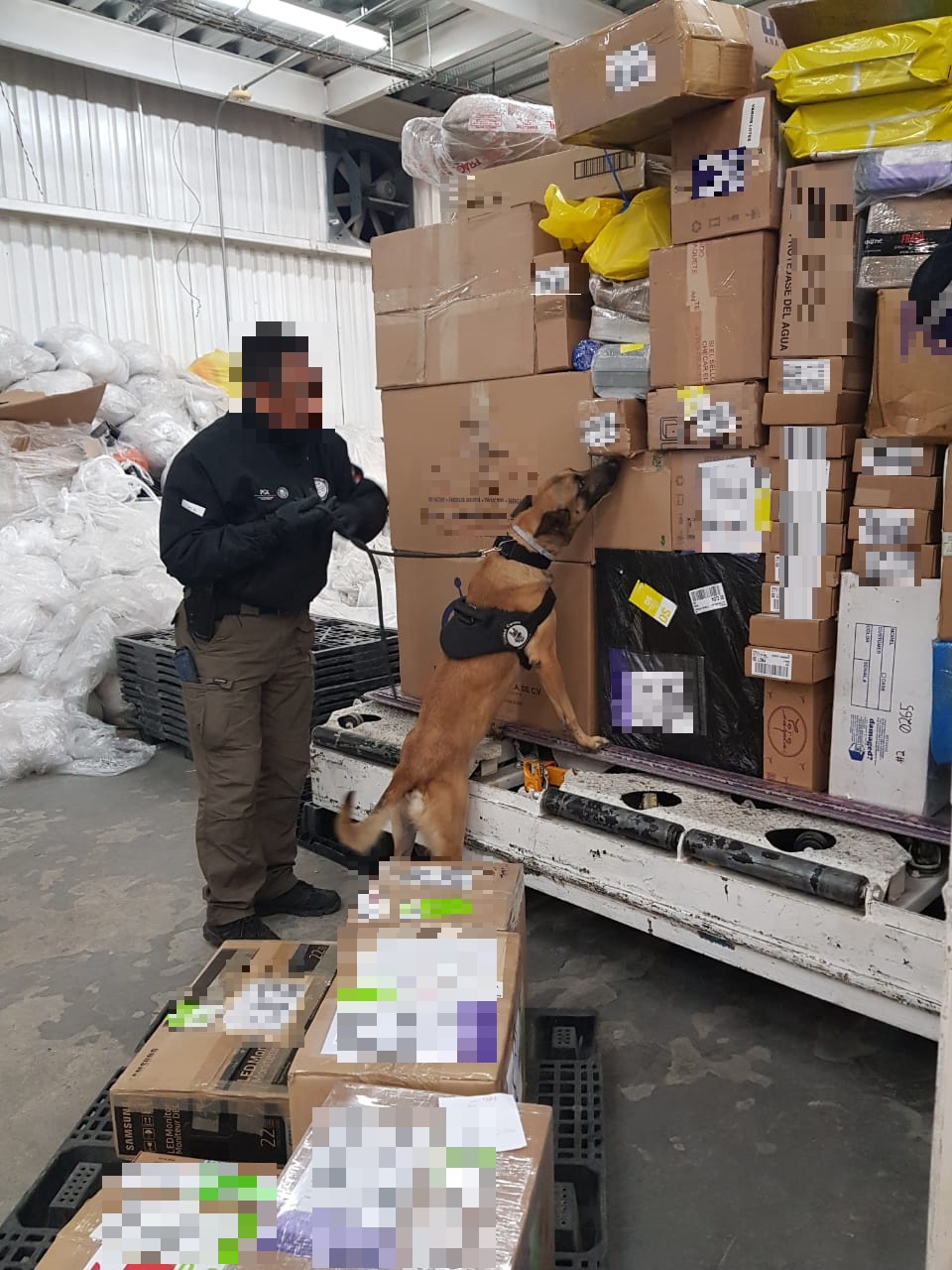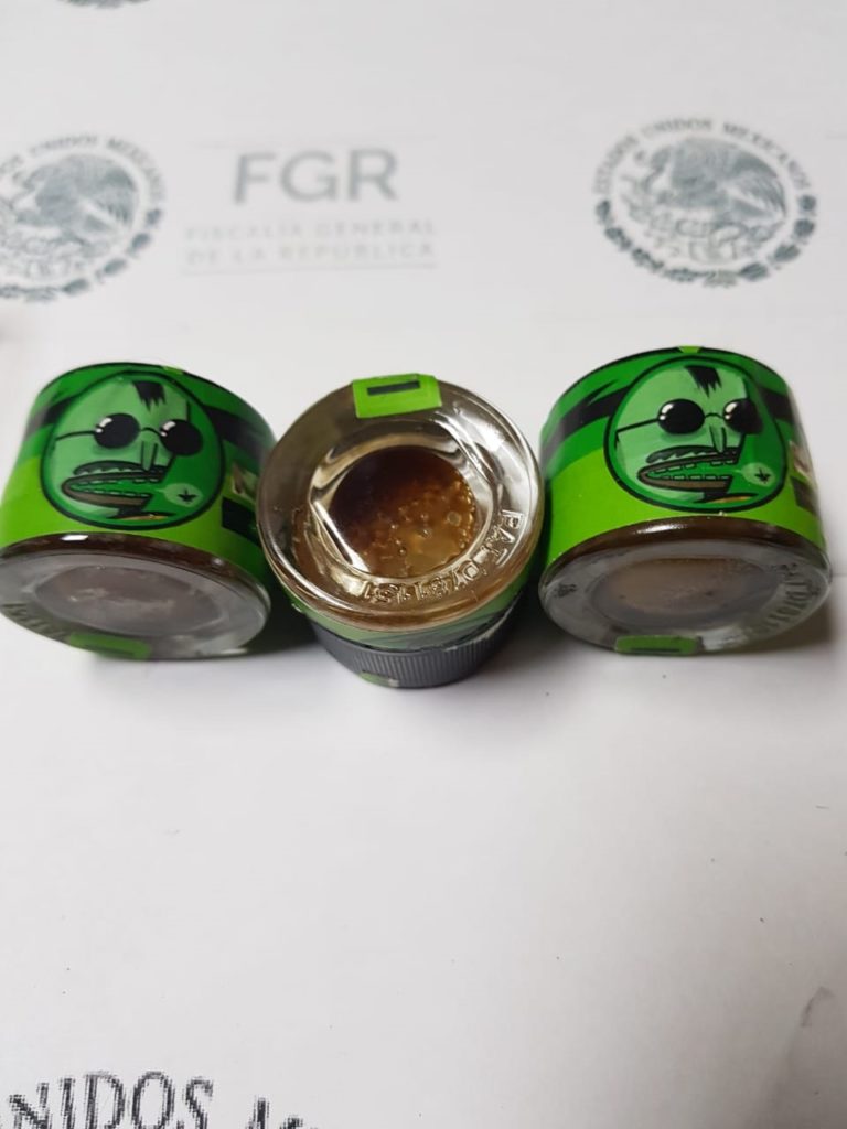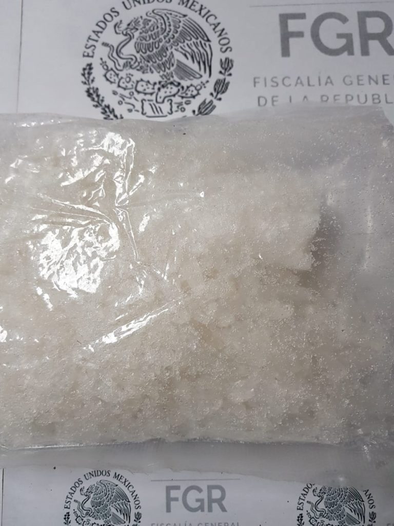 Elementos de la PFM, comisionados al servicio de aeropuerto y paquetería, junto con un canino detector de narcóticos, al realizar revisiones aleatorias a una bodega de carga aérea, localizaron 730 gramos de metanfetamina, 184 gramos dos miligramos de hachís, 30 mililitros de cannabidol, tres gramos de marihuana y dos mililitros de aceite de hachís.