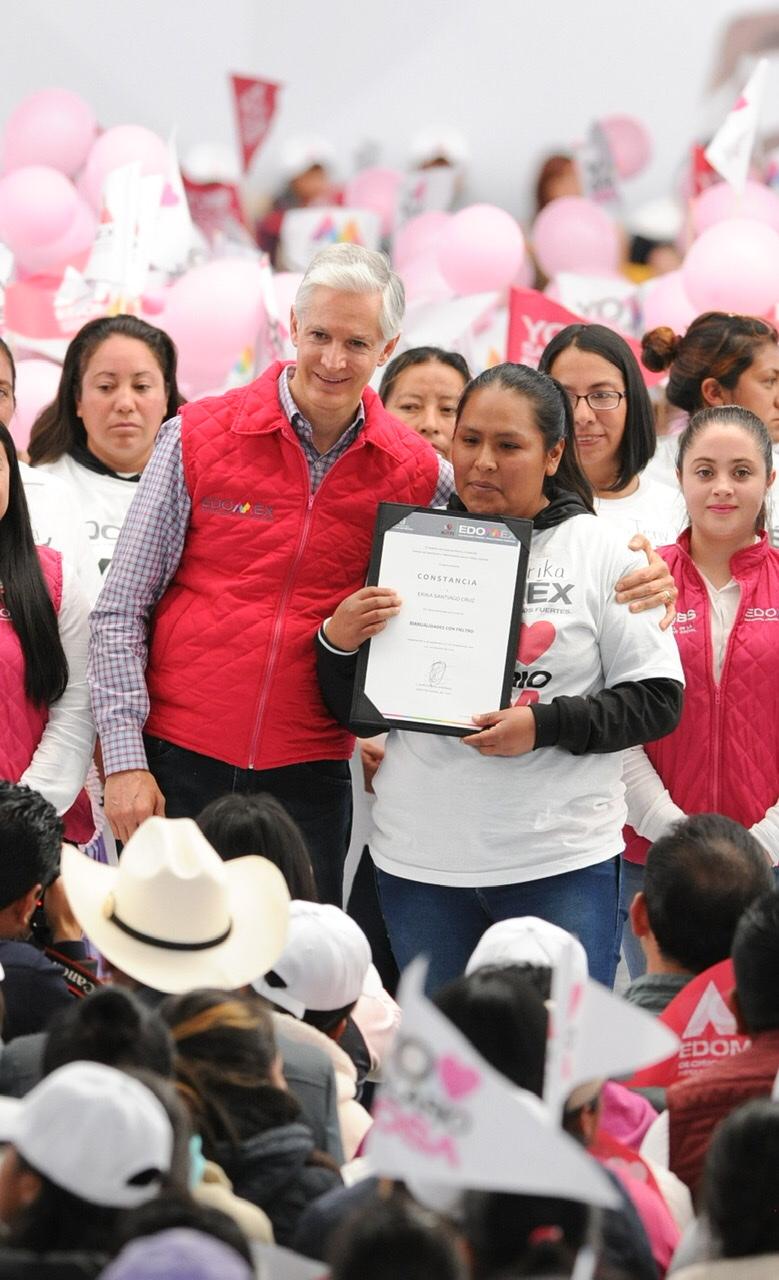 En este evento, el Gobernador entregó tarjetas del Salario rosa a mujeres de los municipios de Acambay, Aculco, Atlacomulco, Chapa de Mota, El Oro, Jocotitlán, Morelos, Polotitlán, San José del Rincón, Soyaniquilpan, Temascalcingo, Timilpan, Villa del Carbón y Jilotepec