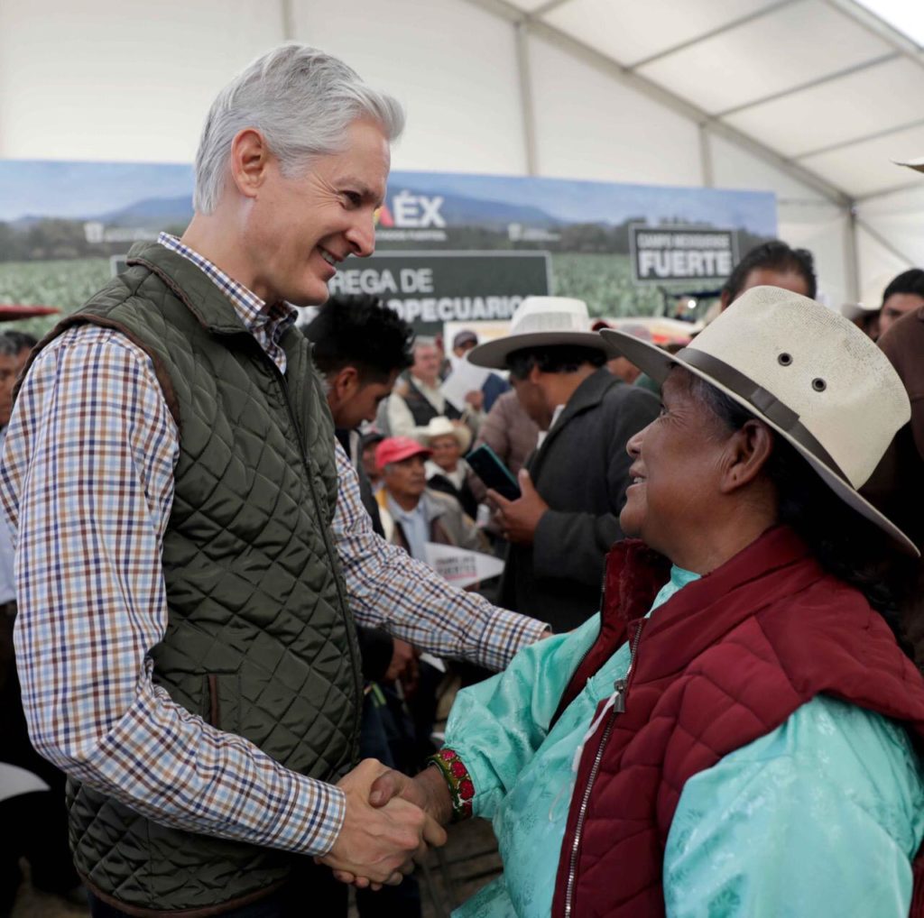 “Me da mucho gusto que hoy sigamos impulsando al campo del Estado de México, en especial, a esta región del norte del estado, más de 2 mil 164 productores, para ser exactos, que el día de hoy estarán recibiendo algún apoyo distinto, para que ayudemos a que le vaya muy bien al campo mexiquense”, manifestó.