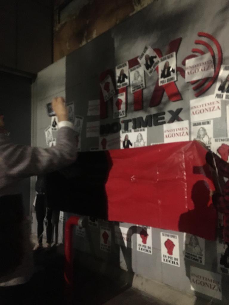 Entre consignas de “fuera Sanjuana, fuera Sanjuana, fuera Sanjuana”, “SUTNOTIMEX, SUTNOTIMEX, SUTNOTIMEX”, “Sanjuana SUTNOTIMEX esta en la lucha”, el contingente de trabajadores arribó hasta las puertas del edifico donde se encuentra la agencia y de manera pacífica instalaron las banderas de huelga.
