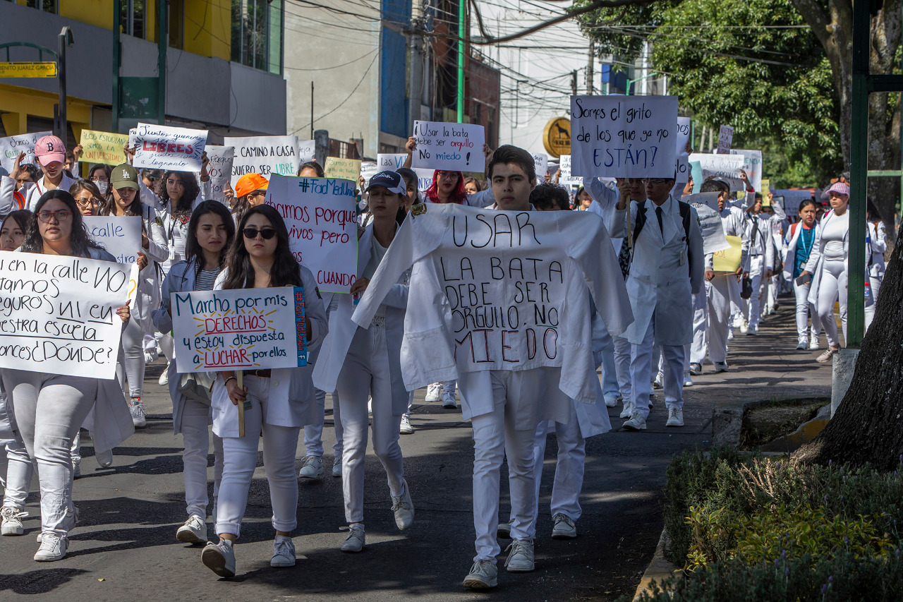 Alrededor de 350 alumnos de la Facultad de Medicina que marcharon de la sede de este organismo universitario al Edificio de Rectoría entregaron a autoridades de la Universidad Autónoma del Estado de México un pliego petitorio en el que solicitan la atención por parte de la institución de los casos de violencia de género denunciados por alumnas, así como el reforzamiento de las medidas de seguridad a su favor.