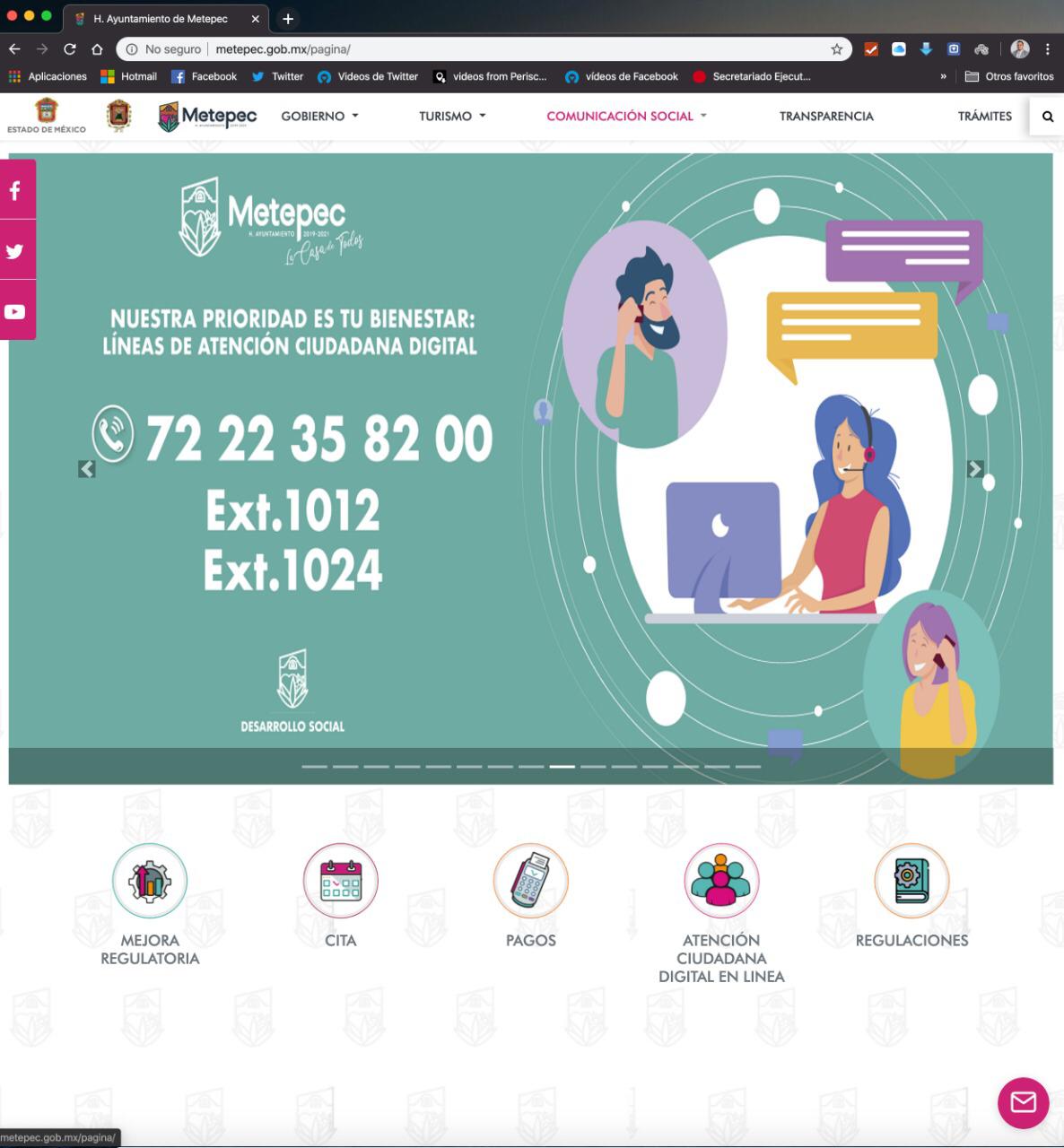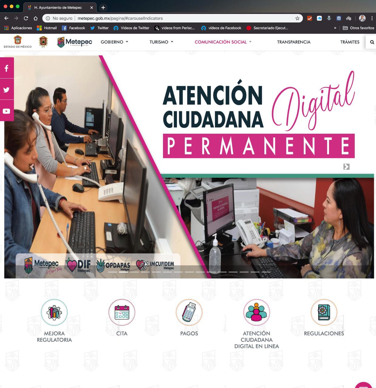 A través de la Coordinación de Gobierno Digital, se diseñaron las herramientas virtuales en la página oficial del ayuntamiento www.metepec.gob.mx, en el que se disponen tres elementos fundamentales.
