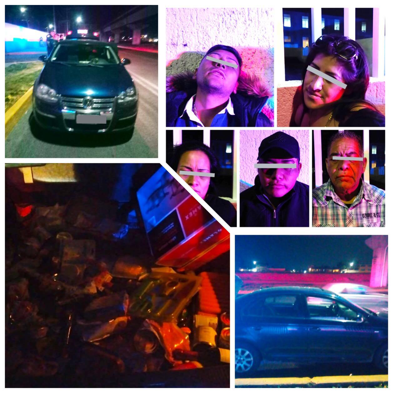 Elementos de la Dirección General de Seguridad Pública Municipal de la Capital Mexiquense atendieron un auxilio en la Delegación Moderna de la Cruz donde se reportaba que 5 personas (2 mujeres y 3 hombres) a bordo de un vehículo Bora color azul habían robado mercancía de una sucursal OXXO. Los presuntos responsables fueron trasladados a la Fiscalía General de Justicia para determinar su situación jurídica.