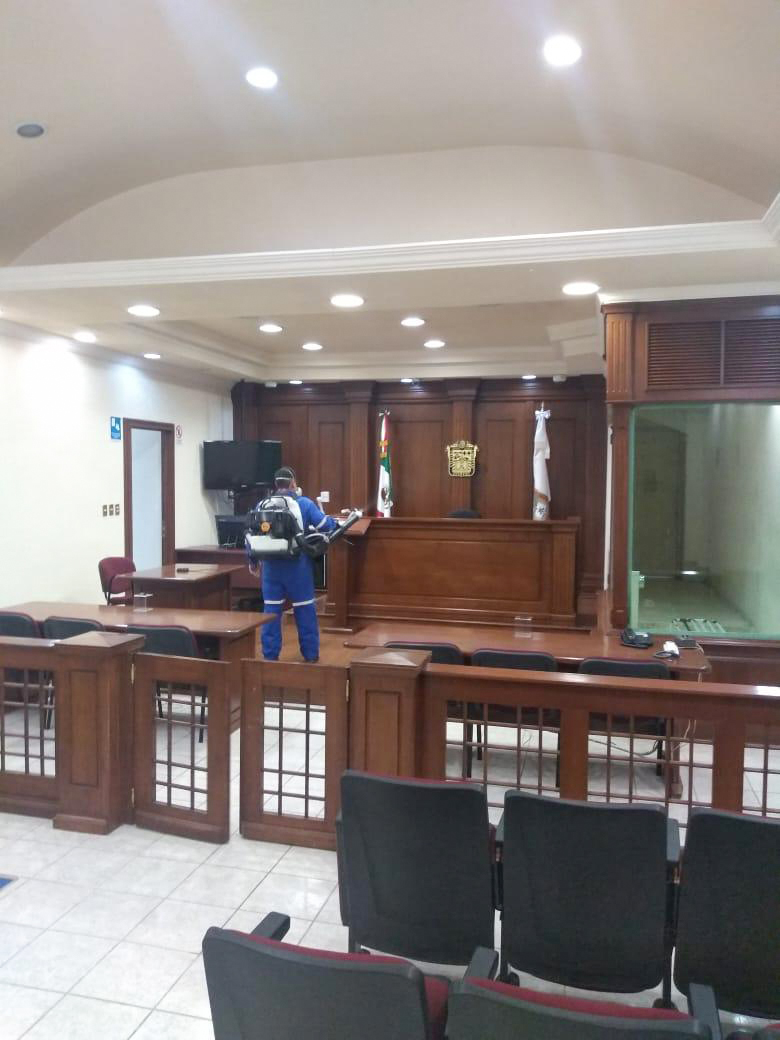 La sanitización inició en los espacios que están en uso en materias Familiar y Penal, así como áreas comunes. En centros de Convivencia y Mediación, juzgados civiles, penales, de cuantía menor de Ecatepec, Teotihuacán, Sultepec, Nezahualcóyotl, Los Reyes la Paz, Ixtlahuaca, Atlacomulco, Ixtapan de la Sal, Lerma, San Felipe del Progreso, Cuautitlán, Coacalco, El Oro, Acambay, Chicoloapan, Chiconcuac, Tlalnepantla, entre otros.