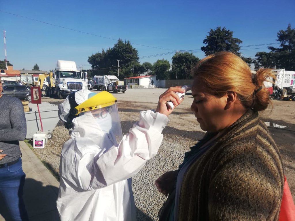 Metepec, México; 13 de abril de 2020. Con la finalidad de cuidar la salud de las y los trabajadores del ayuntamiento de Metepec que realizan actividad esencial en oficinas públicas y en campo, a partir de este día tienen una revisión médica y medición de temperatura a través de un termómetro infrarojo, previo inicio de sus actividades.