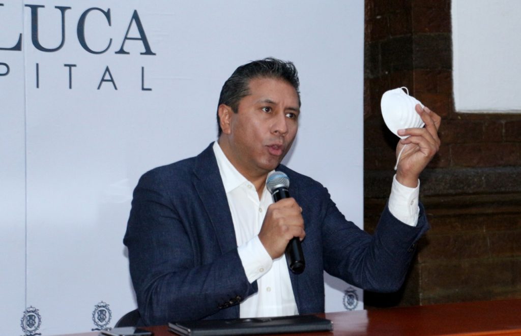 Toluca, Estado de México, lunes 4 de mayo de 2020.- El presidente municipal Juan Rodolfo Sánchez Gómez informó de manera veraz y oportuna el avance del coronavirus en Toluca, porque “nos interesa que la sociedad reafirme las acciones preventivas y entendamos que es urgente que nos guardemos en nuestros hogares, sobre todo quienes no creen que el virus existe, que está lejos de nosotros o que no se van a contagiar”.