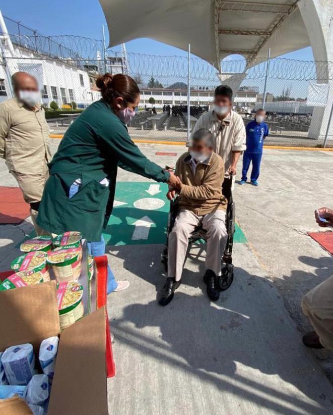 Dentro de las acciones enfocadas para los adultos mayores se han otorgado canastas alimentarias a personas que se encuentran en vía pública, incentivándoles para que permanezcan en sus hogares y para los más de 500 que están privados de su libertad dentro de los 13 Centros Penitenciarios Estatales se entregaron aparatos funcionales y artículos de higiene personal.