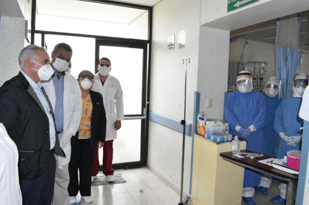 En los tres hospitales se reunió con el personal, donde los trabajadores le detallaron la forma en que están operando para atender a quienes han resultado positivos a COVID-19, pero sin desatender los demás servicios y al mismo tiempo, refrendaron su deber con la atención a la salud de la población.