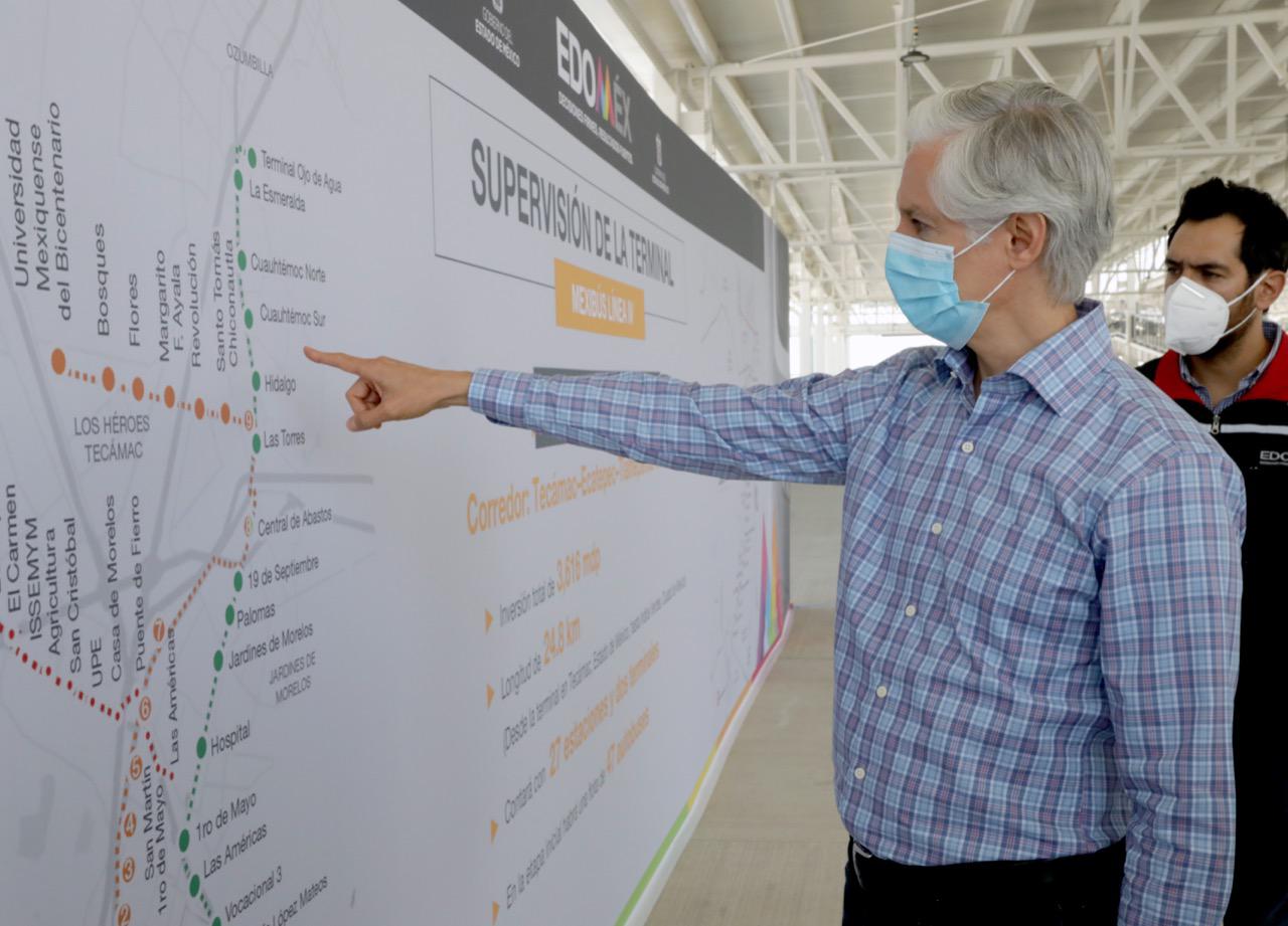 Alfredo Del Mazo puntualizó que este sistema de transporte contará con sistemas de monitoreo y videovigilancia, además de que estará integrado por 27 estaciones.