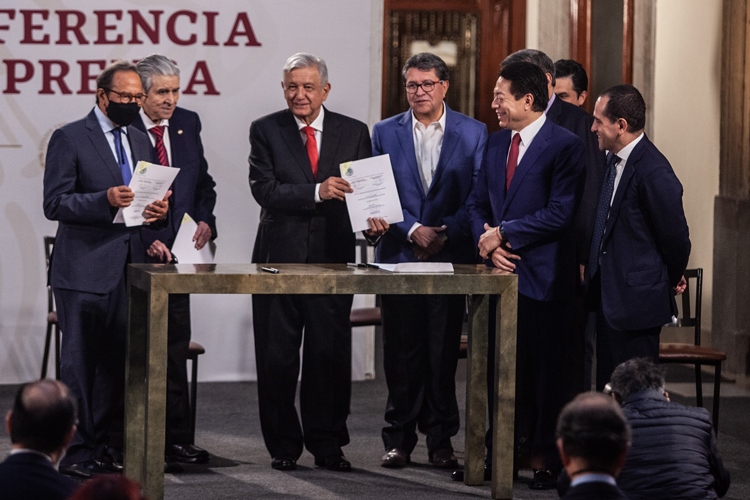 El anuncio fue hecho por el presidente durante su conferencia mañanera, donde además de Arturo Herrera, secretario de Hacienda y Crédito Público, la parte patronal estuvo representada por Carlos Salazar Lomelí, presidente del Consejo Coordinador Empresarial, así como diversos dirigentes sindicales.
