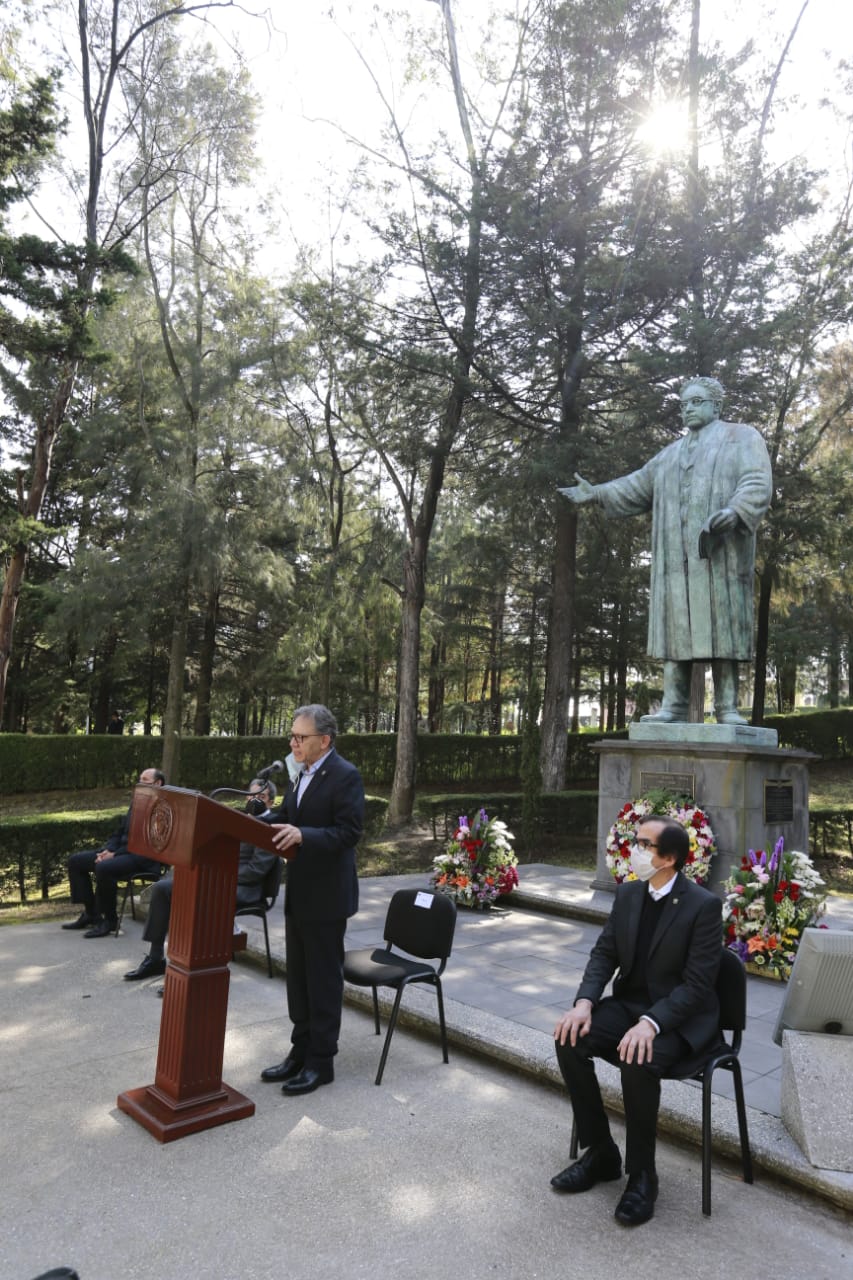 Al presidir la ceremonia conmemorativa al 123 aniversario del natalicio del académico y escritor, señaló que la UAEM abrirá sus aulas de manera virtual y presencial con la energía transformadora que caracteriza a su comunidad, “con la tenacidad de quienes se crecen frente al desafío”.