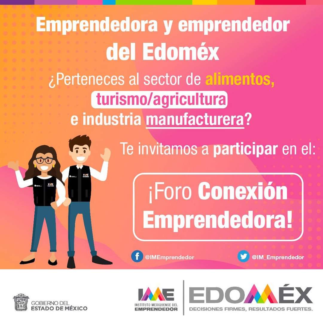 El IME invita a participar en el Foro Conexión Emprendedora a las emprendedoras, emprendedores, MIPyMES y público en general que deseen participar en la promoción, vinculación y generación de alianzas comerciales de su negocio en el Estado de México.