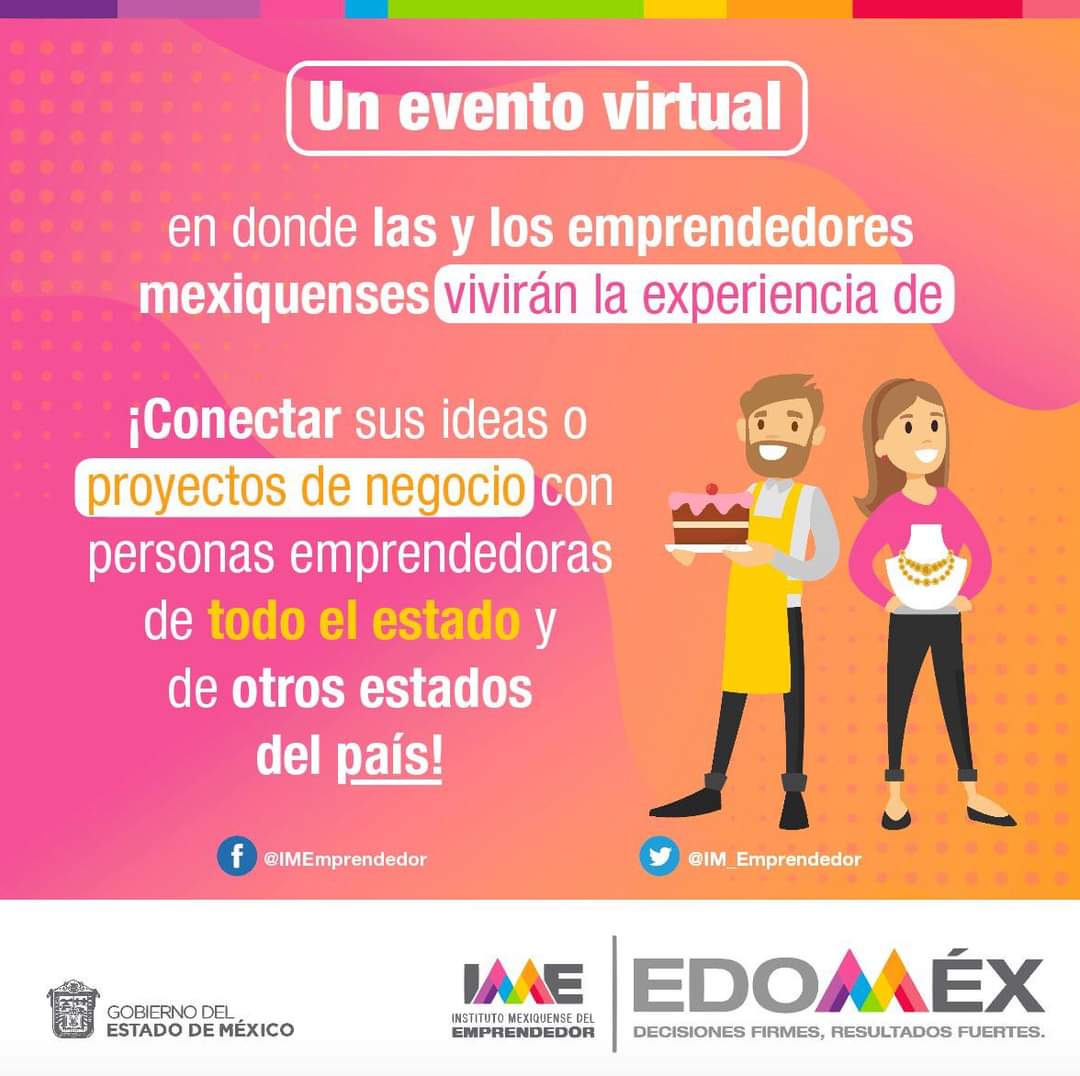 Como parte de la importancia de promover programas que apoyen las actividades productivas, el emprendimiento y el crecimiento de los negocios, se brindarán espacios de exhibición y comercialización para los emprendimientos mexiquenses con los cuales sea posible identificar oportunidades de negocio y mediante las “Cápsulas de conexión”, podrán darse a conocer y promocionar su idea o proyecto de negocio.