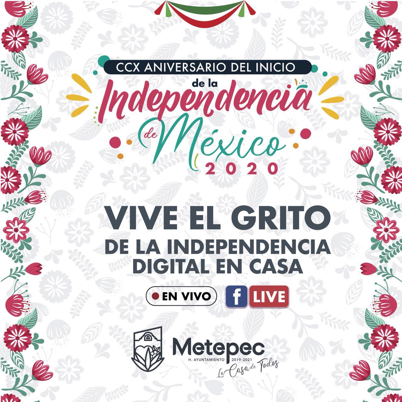 Metepec, México; 1 de septiembre de 2020. El gobierno municipal de Metepec prepara un gran programa cívico cultural digital, para festejar el CCX aniversario del inicio de la Independencia de México, que incluye la ceremonia del Grito de Independencia.