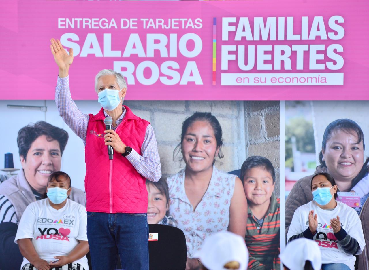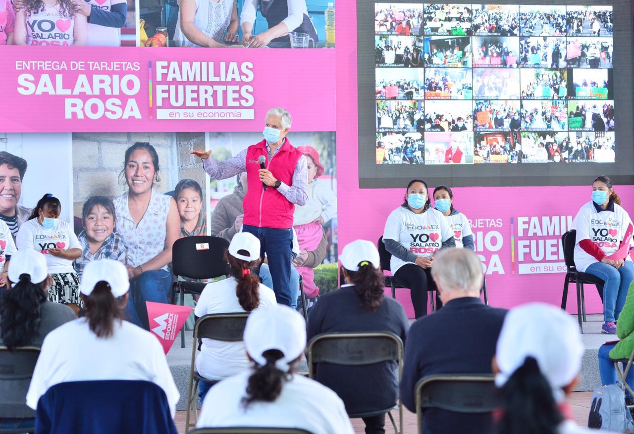 Alfredo Del Mazo sostuvo que Salario rosa es un programa que reconoce la fortaleza que tienen las amas de casa para superar las adversidades y luchar diariamente para ayudar al desarrollo de los integrantes de la familia.