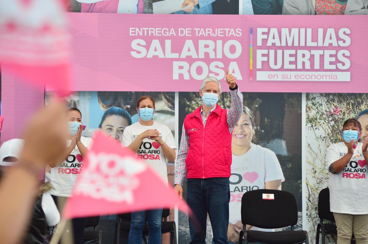 “Les va a ayudar mucho a ustedes, a sus familias y que además sepan que pueden contar con él de manera permanente, no es una sola vez, el Salario rosa es permanente, hoy ustedes se vuelven beneficiarias del Salario rosa por primera vez y, a partir de ahorita, lo van a recibir permanentemente, porque ésa es la mejor inversión que podemos hacer, el apoyo a las mujeres, a las amas de casa y a las familias del Estado de México”, afirmó.