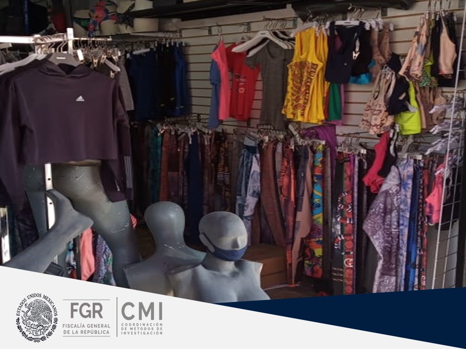 Derivado de actos de investigación realizados por parte de elementos de la Policía Federal Ministerial, bajo la conducción del Ministerio Público Federal (MPF), en un inmueble ubicado en la colonia Margarita Maza de Juárez, del municipio de Atizapán de Zaragoza, aseguraron 740 prendas de ropa deportiva, 700 etiquetas y calcomanías de una marca registrada y una máquina denominada plancha para etiquetar.