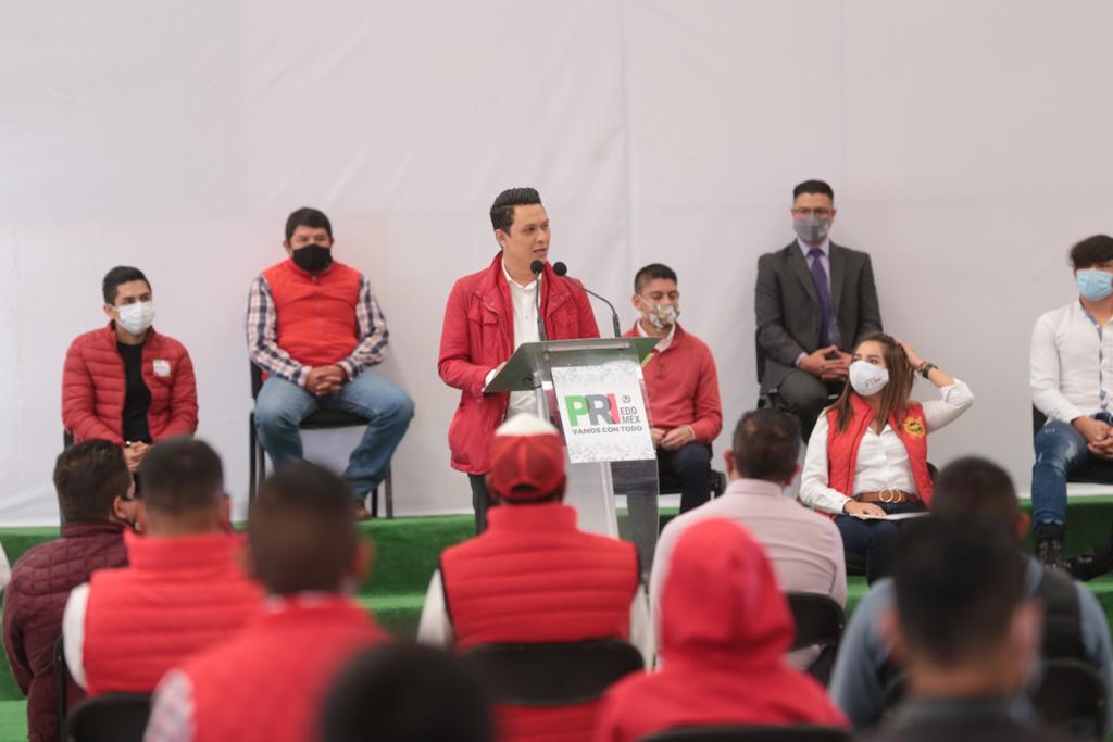 En el Centro de Capacitación del Militante del Comité Directivo Estatal, y en cumplimiento a las medidas de sana distancia por la pandemia de Covid-19, puntualizó que con el ímpetu de los jóvenes priistas “vamos a levantar nuestras estructuras partidistas hasta el último rincón del Estado de México; queremos una verdadera red juvenil trabajando en las regiones”.