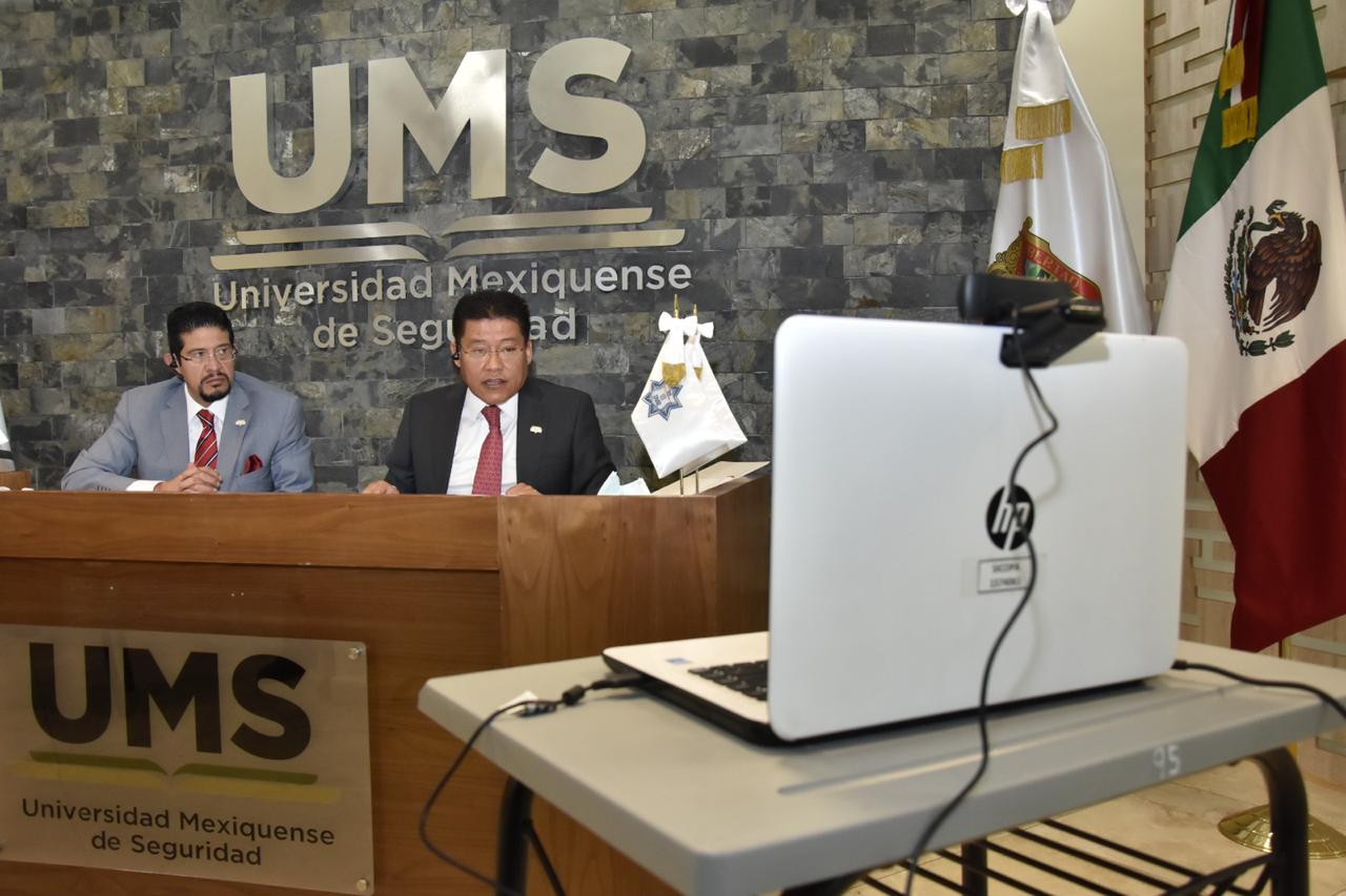 Durante la sesión virtual, participaron Héctor López Santillán, Manuel de Jesús Villa Real Romero, José Fernando Sánchez González y María de Lourdes Rosales Martínez, delegados mexicanos de CALEA, quienes después de una moción otorgaron la acreditación a la Universidad Mexiquense de Seguridad.