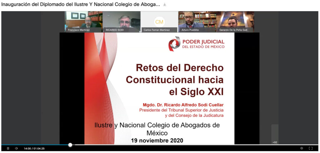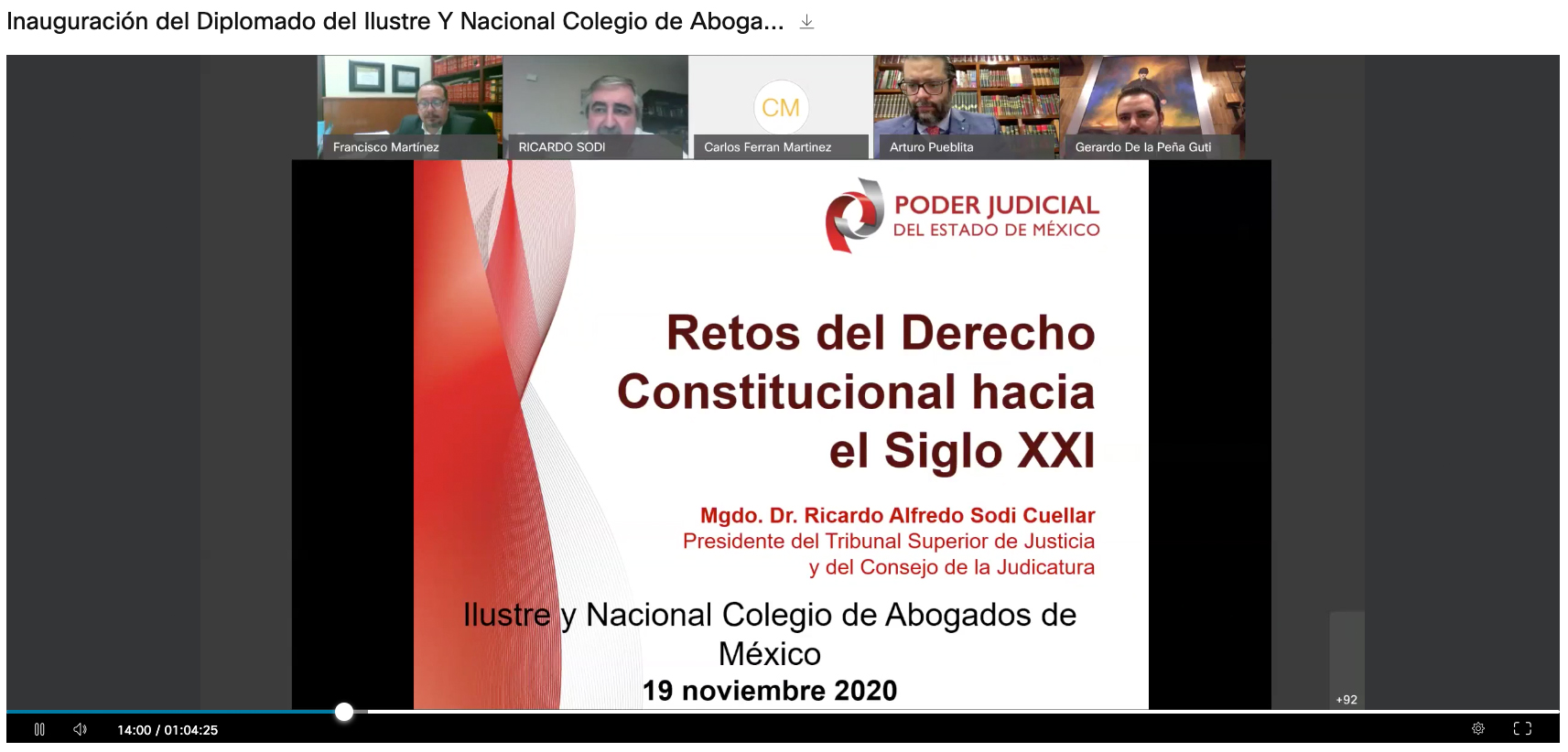 La apertura, realizada por la plataforma Webex, fue encabezada por el titular del PJEdomex, Ricardo Sodi Cuellar, el presidente del Ilustre y Nacional Colegio de Abogados, Arturo Pueblita Fernández; el consejero de la Judicatura, Gerardo De la Peña Gutiérrez y el coordinador de la Administración de los Tribunales Laborales, Francisco Javier Martínez Guerrero.