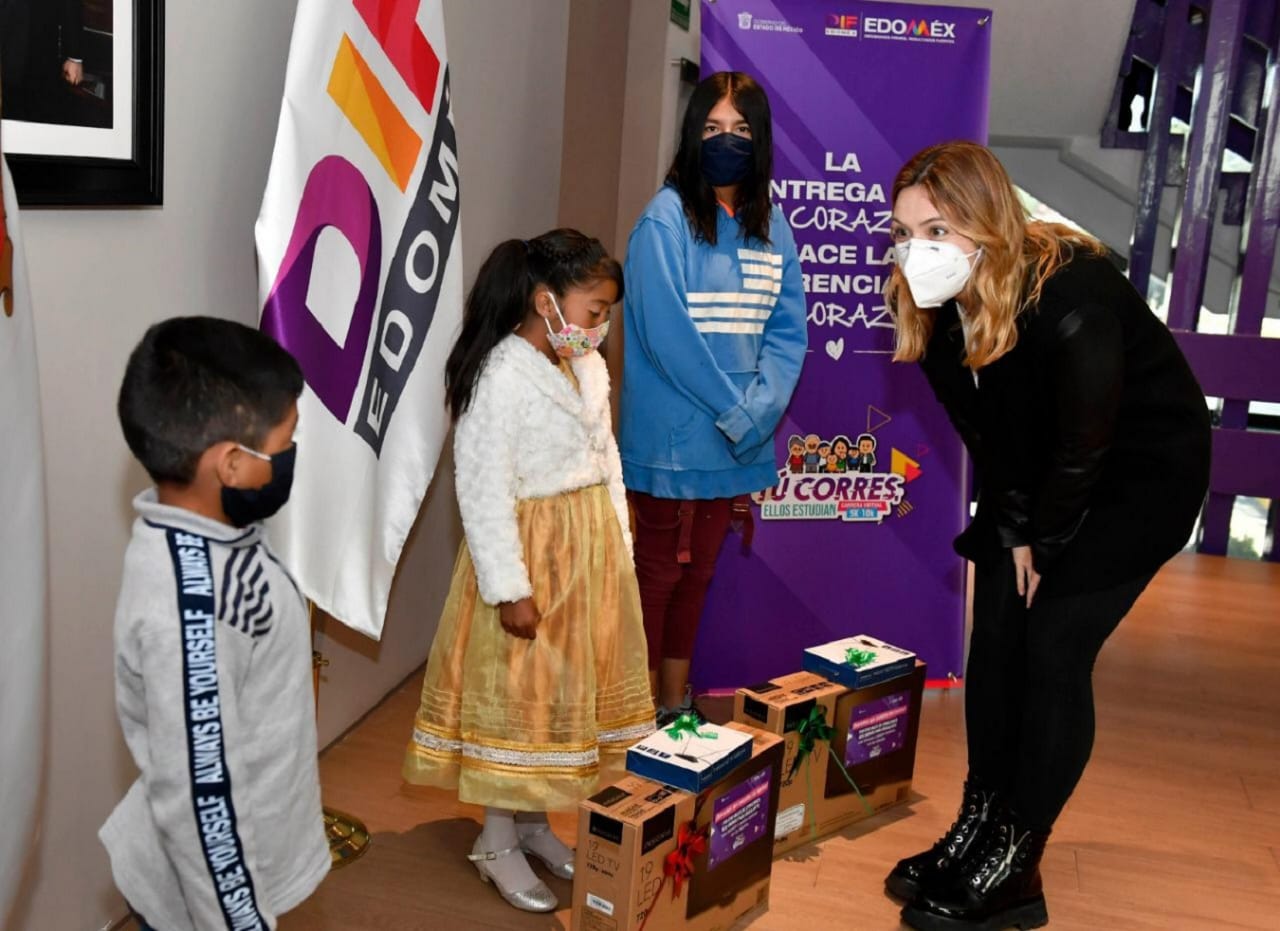 - Entrega la Presidenta Honoraria del DIF Estado de México pantallas y antenas a tres menores de nivel básico, y vía remota a 197 estudiantes de 13 regiones.