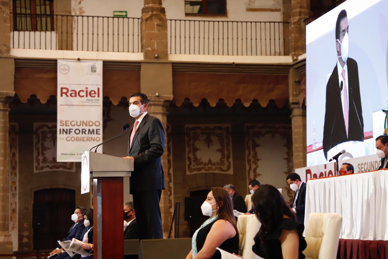 El Presidente Municipal Raciel Pérez Cruz presentó su Segundo Informe de Gobierno durante la Tercera Sesión Solemne del Ayuntamiento, detalló las acciones implementadas para transformar a Tlalnepantla en una ciudad segura, sustentable e incluyente, con una administración transparente que combate la corrupción, la violencia de género, apoya la cultura y la educación, además de las medidas que se realizan para enfrentar la pandemia de COVID-19.