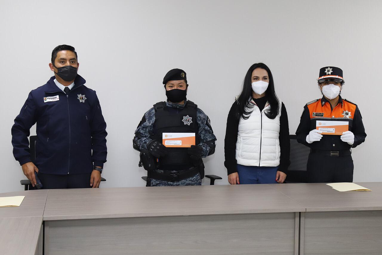 La presidenta municipal, entregó un apoyo económico para todos los uniformados de la corporación, enalteciendo la vocación y desempeño mostrado a la fecha, e instruyó no bajar la guardia y fortalecer el trabajo mediante diferentes operativos coordinados y otras estrategias que han dado resultados favorables.