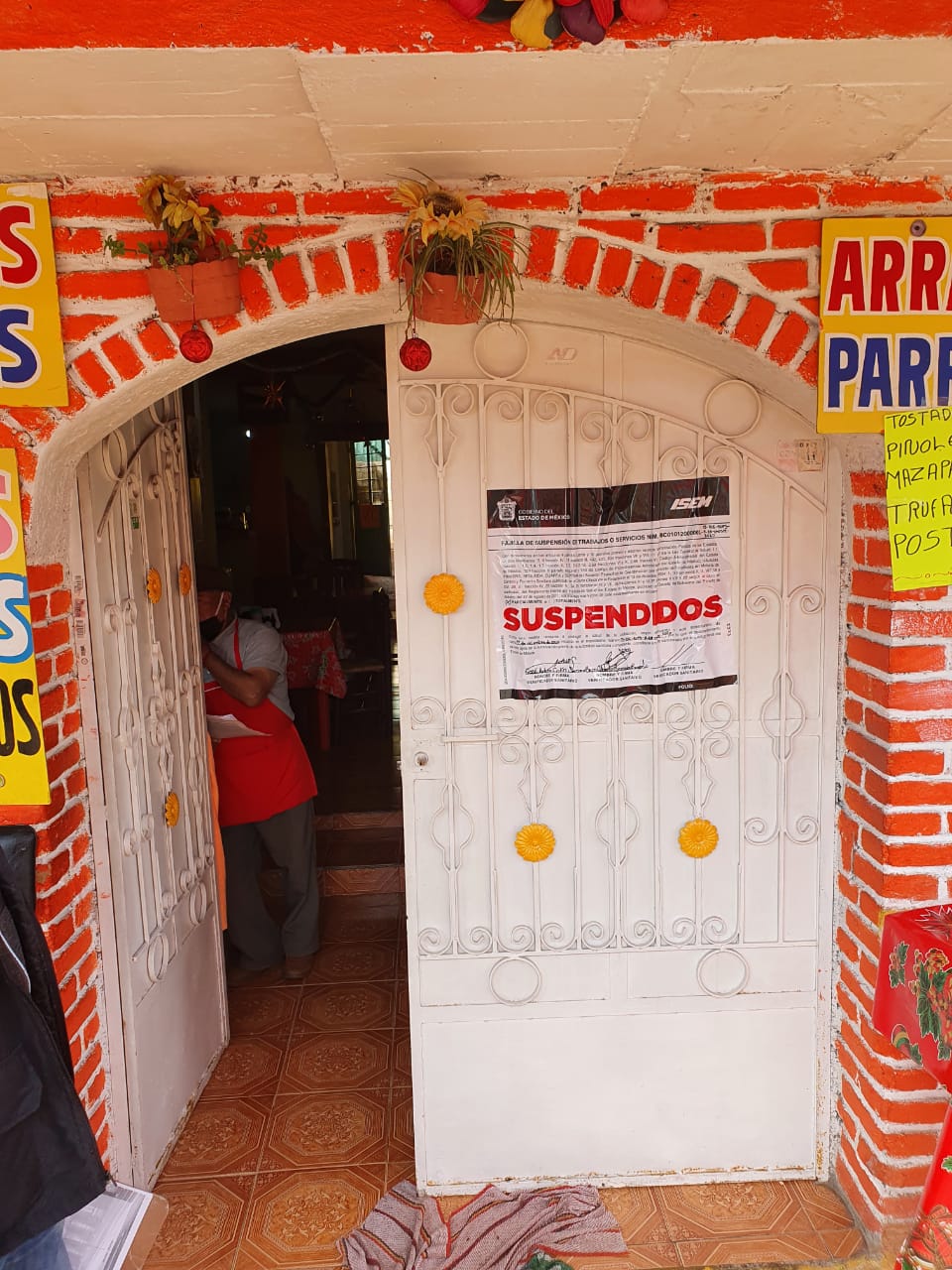 Toluca, Estado de México, 26 de diciembre de 2020. Por incumplir las disposiciones sanitarias establecidas para mitigar la pandemia por COVID-19, la Secretaría de Salud estatal, a través de la Comisión para la Protección contra Riesgos Sanitarios del Estado de México (Coprisem) suspendió seis establecimientos de venta de alimentos y bebidas en La Marquesa.