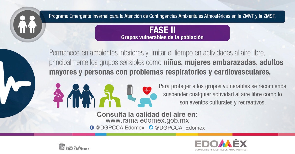 La dependencia se encuentra trabajando en coordinación con los municipios de las Zonas Metropolitanas del Valle de Toluca y de Santiago Tianguistenco para llevar a cabo las acciones del Programa Emergente Invernal para Atender la Contingencia Ambiental Atmosférica por partículas.
