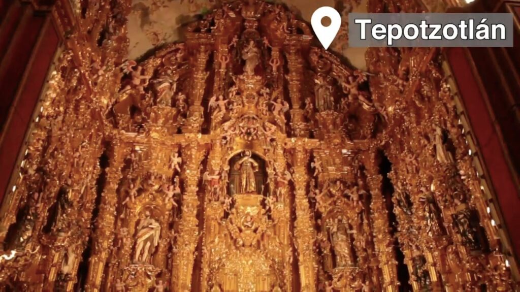 El viaje virtual a Tepotzotlán lleva al espectador a conocer el Museo Nacional del Virreinato, un icono del estilo barroco del Siglo XVIII; además, para los amantes de la naturaleza, este Pueblo Mágico cuenta con el parque ecoturístico “Los Arcos”, lugar ideal para montar a caballo, practicar tirolesa y volar en globo.