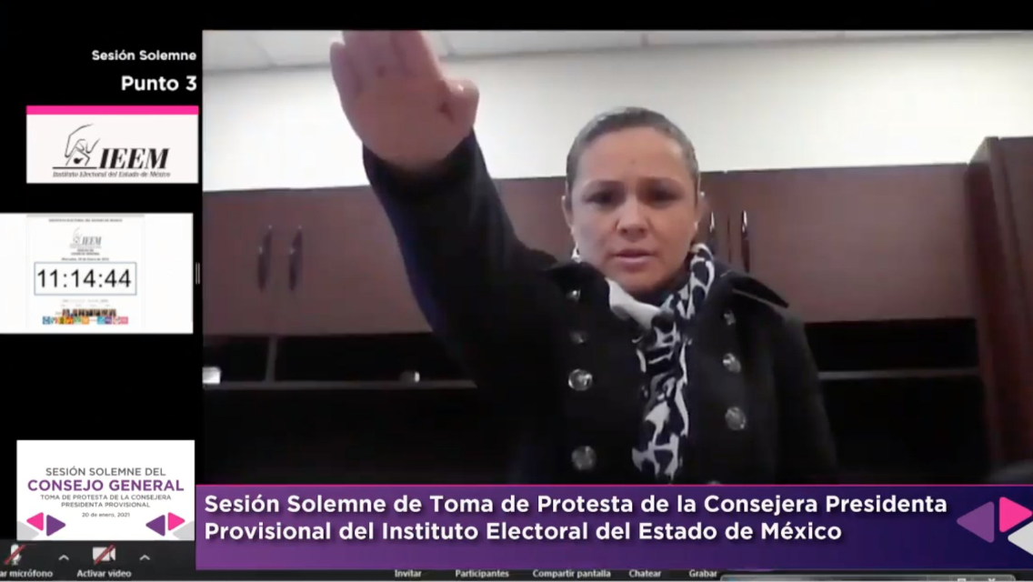 Toluca, Estado de México.- En sesión solemne del Consejo General del Instituto Electoral del Estado de México (IEEM) la Mtra. Laura Daniella Durán Ceja, rindió protesta como consejera presidenta provisional del IEEM, para dar cumplimiento a lo mandatado por el Instituto Nacional Electoral (INE), en tanto esta instancia federal realiza el nombramiento definitivo para ocupar la vacante. Posteriormente el Consejo General del órgano electoral, llevó a cabo su primera sesión ordinaria de 2021.
