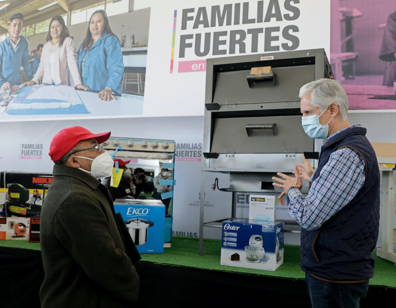 Al hacer las primeras entregas de este programa a propietarias y propietarios de panaderías, herrerías, cocinas económicas o talleres de costura, el mandatario estatal enfatizó que este respaldo llegará a pequeños comercios de los 125 municipios del Edoméx, y que cuenta con una inversión de 120 millones de pesos.