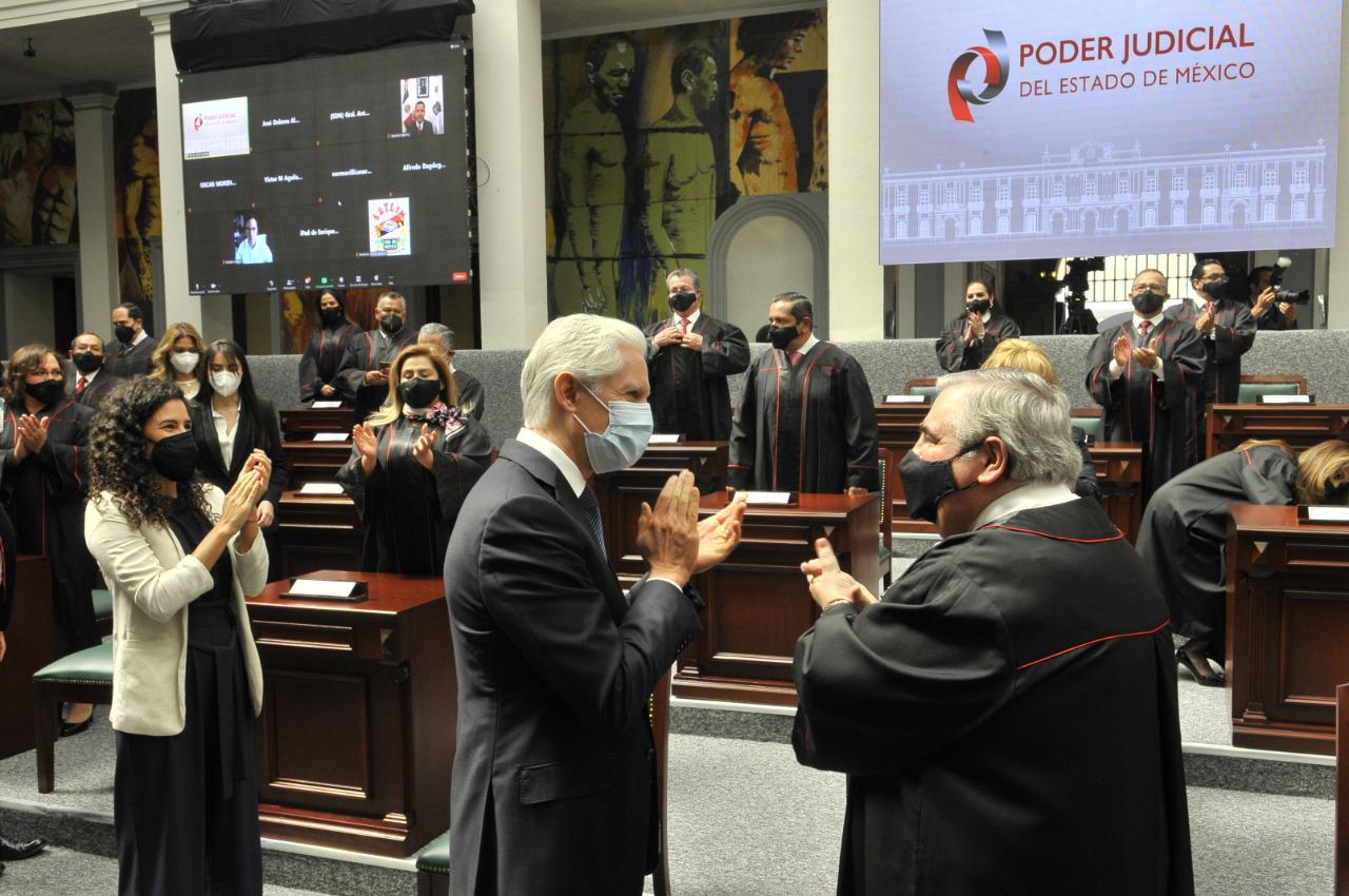 También el Gobernador mexiquense hizo un reconocimiento a la tarea del Poder Judicial y de su Presidente, ya que encabeza la transformación de la justicia, consolidando la transparencia, la eficiencia, la innovación y el respeto a los derechos humanos como ejes de acción.