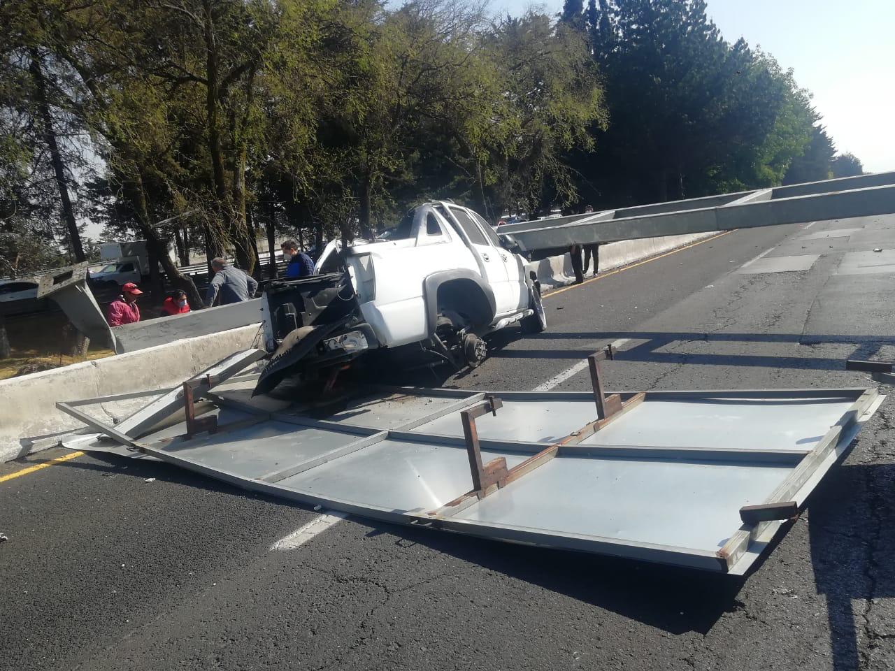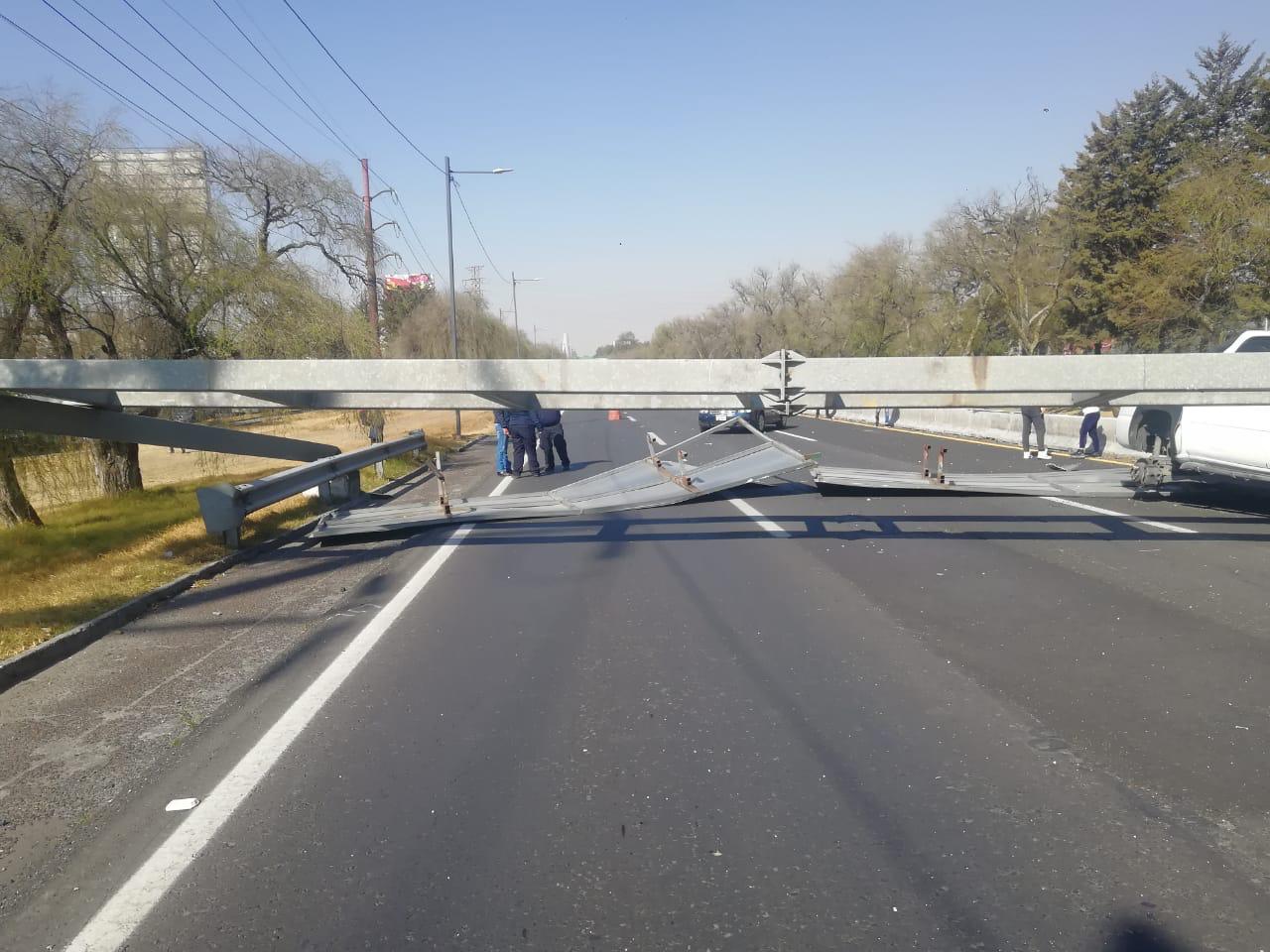 Toluca, Estado de México, 20 de febrero de 2021. La Secretaría de Movilidad, a través de la Junta de Caminos informó que, derivado de un accidente automovilístico en el que fue derribado un señalamiento tipo puente en Paseo Tollocan, resultó lesionado el conductor de una camioneta particular.