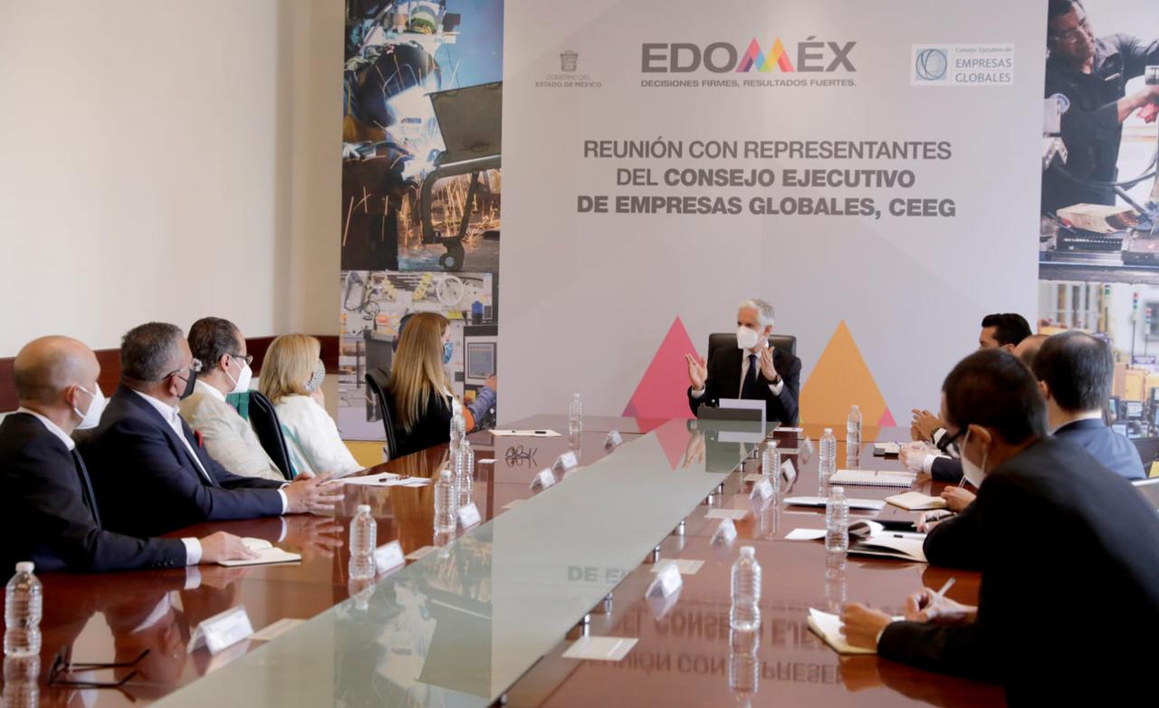 «Nos reunimos con representantes del Consejo Ejecutivo de Empresas Globales @CEEG_Oficial, para fortalecer nuestros vínculos de colaboración y generar mayor inversión en el #Edoméx», publicó Alfredo Del Mazo en su cuenta de Twitter.