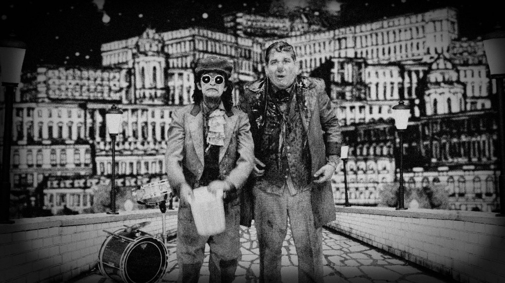 La puesta en escena relata la historia de dos mendigos ciegos, Patachón y Giraffier, que se enfrentan en cómicas batallas de música y juego de cartas para obtener el mejor lugar en un puente.