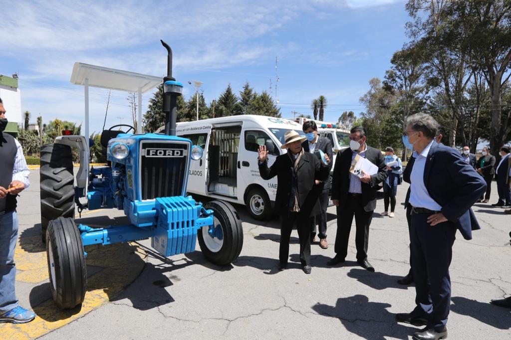 Para este mismo espacio universitario se entregó un vehículo de servicio ambulatorio de medicina veterinaria para grandes especies y una unidad de traslados para el Centro Infantil de Rehabilitación con Asistencia Canina; en tanto, para el Centro Universitario UAEM Temascaltepec, un tractor; y para la dirección de Obra Universitaria, dos camionetas doble cabina.