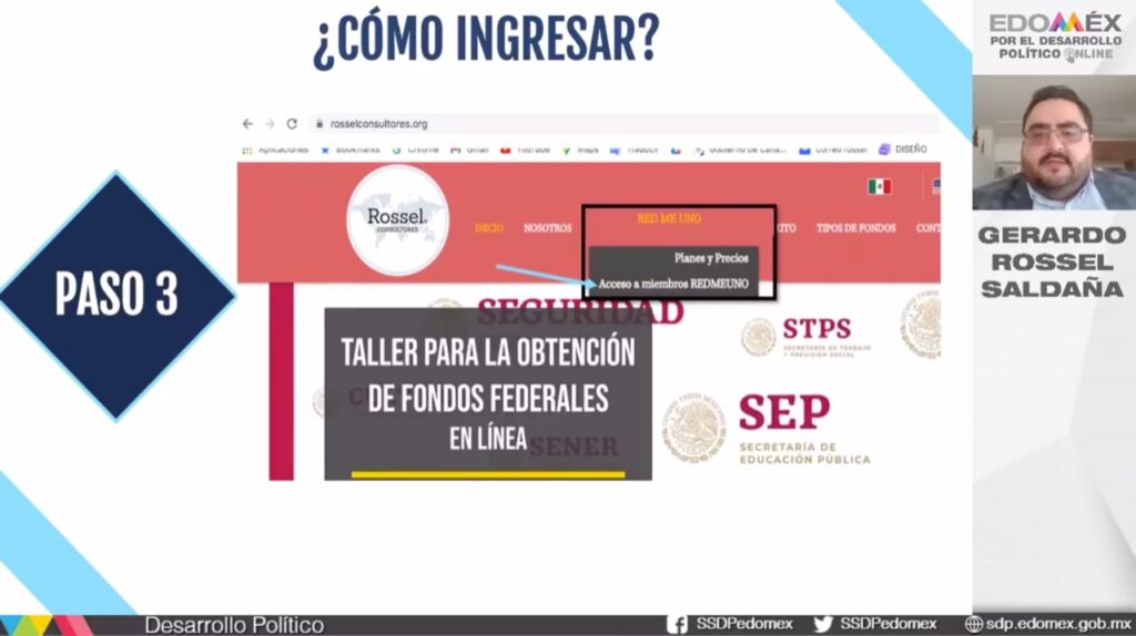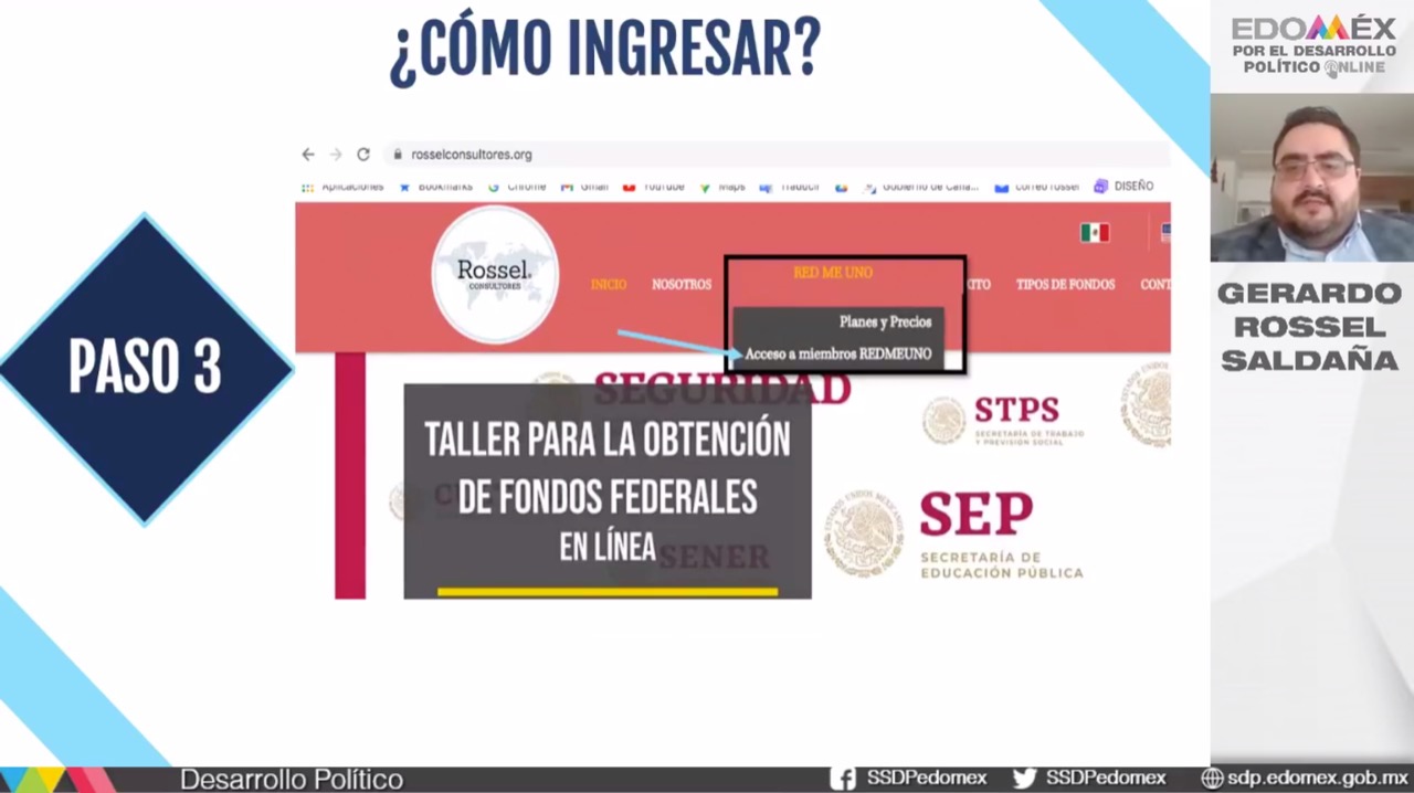 Toluca, Estado de México, 6 de abril de 2021. En el marco de “La hora de la sociedad civil”, espacio virtual dedicado a la profesionalización de Organizaciones de la Sociedad Civil (OSC), a cargo de la Subsecretaría de Desarrollo Político estatal, se realizó la videoconferencia “Introducción a la movilización de recursos y cooperación internacional para las OSC”, a cargo del experto en marketing y Director de Rossel Consultores, Gerardo Rossel Saldaña.