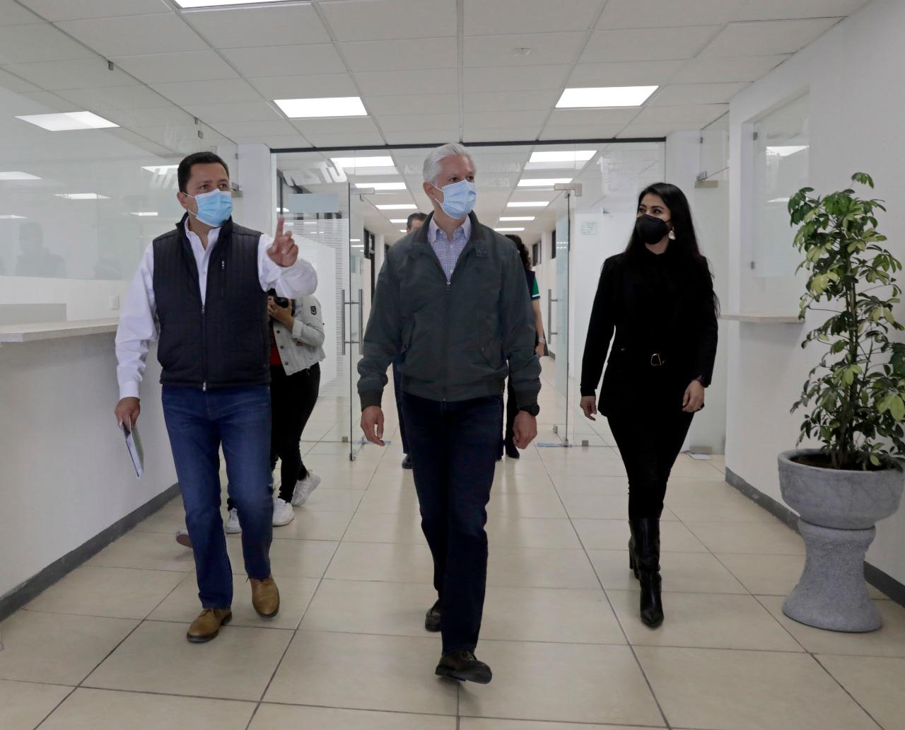 El mandatario estatal visitó la Universidad Tecnológica de Zinacantepec, plantel que ya retomó algunas actividades presenciales en laboratorios y talleres.