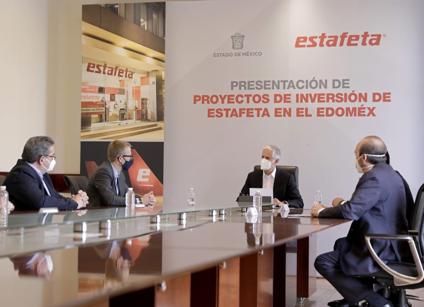 Toluca, Estado de México, 26 de abril de 2021. La empresa de mensajería Estafeta presentó su proyecto de inversión encaminado a modernizar sus procesos de logística en la entidad mexiquense, se trata de la apertura del Hub Automatizado en Cuautitlán Izcalli, una zona con uno de los mejores sistemas de conexión carretera en el país, que estará especializado en el manejo de servicios de garantía máxima y ventas en línea, convirtiéndose en uno de los más avanzados en México.