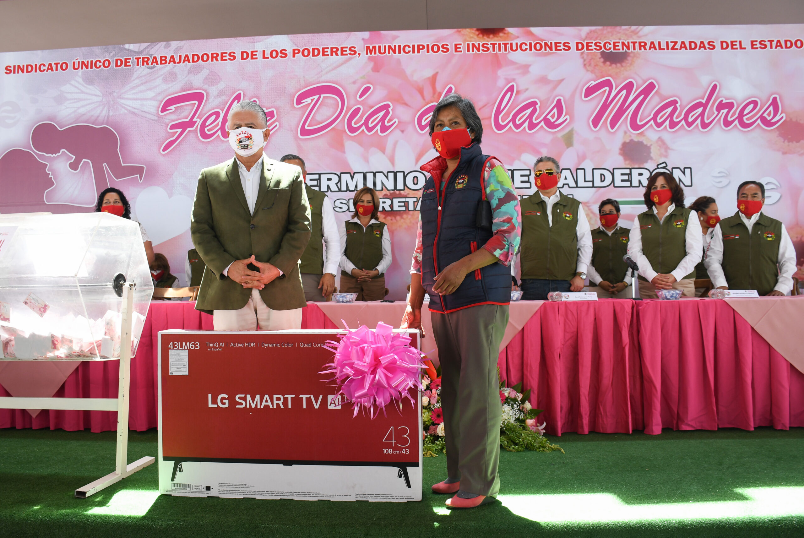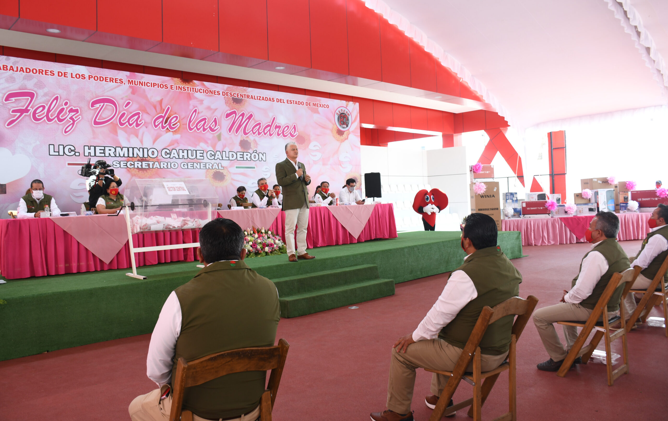 Toluca, Estado de México, mayo de 2021. Herminio Cahue Calderón, Secretario General del Sindicato Único de Trabajadores de los Poderes, Municipios e Instituciones Descentralizadas del Estado de México (SUTEYM), encabezó el festejo alusivo al Día de las Madres 2020 y 2021, del sector central; acto que se realizó en el marco de los protocolos sanitarios y contó con participación representativa de mamás sindicalizadas.