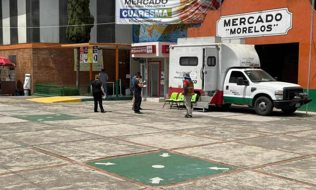 para detectar COVID, en la explanada del Mercado Morelos de Toluca