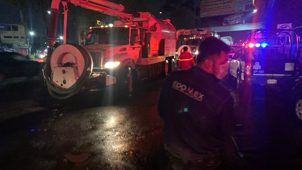 En el municipio de Atizapán de Zaragoza, el Grupo Tláloc trabaja con cinco camiones hidroneumáticos, dos camiones cisterna y dos minicargadores, para el desalojo de las aguas pluviales y residuales en la colonia Villas de la Hacienda, donde el reporte preliminar indica que el agua ingresó a nivel de patios en 24 viviendas.